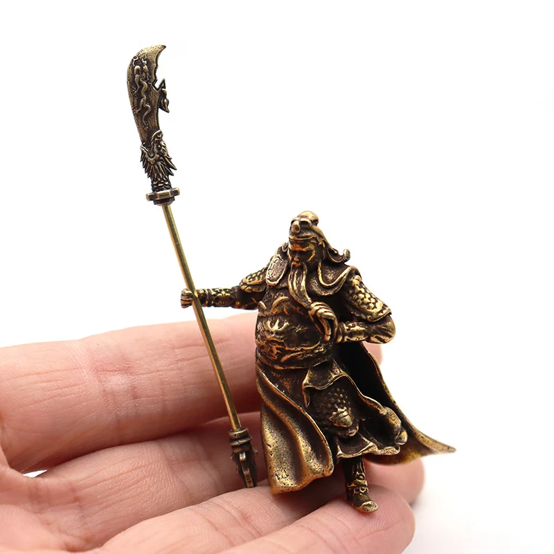 Antique Copper Guan Gong Statue Chinese God Of War Buddha Figurines Miniatures Desk Ornament Feng Shui Home Decorations