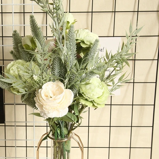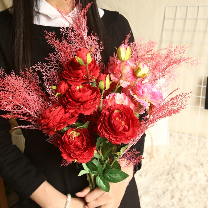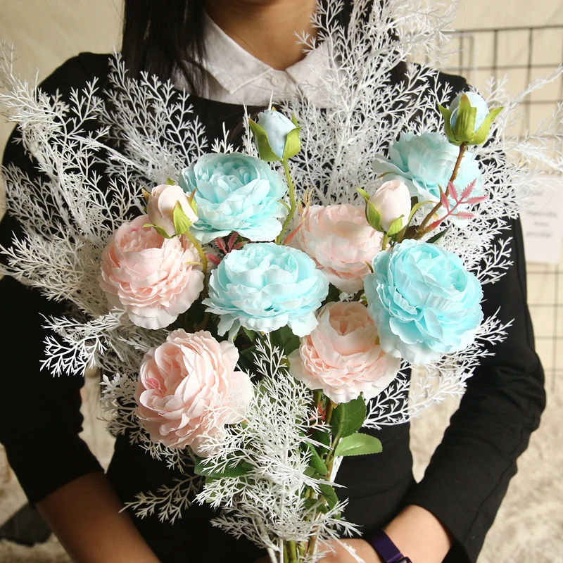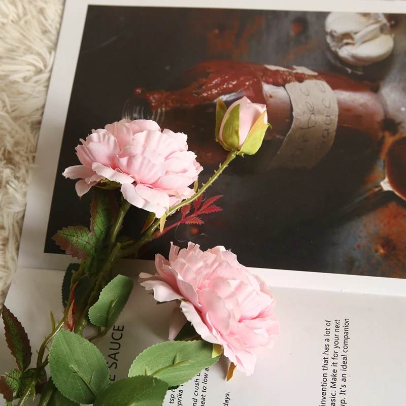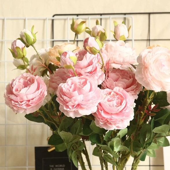 LuanQI 63cm Rose Pink Silk Peony Artificial Flowers Bouquet 3 Big Head Cheap Fake Flowers For Home Wedding Decoration Indoor