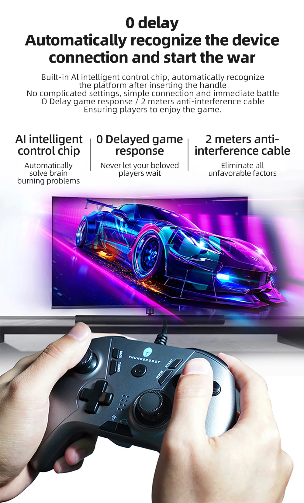 Управление интеллектуальным чипом AI, автоматическое распознавание платформы после вставки ручки. 0 задержка отклика игры, 2 м анти-помех кабель, чтобы обеспечить ваш игровой опыт.