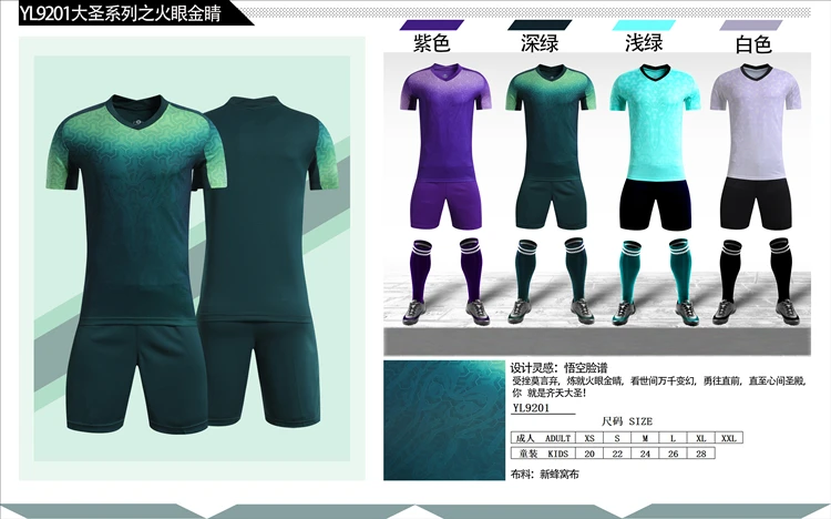 High-quality blank sportswear, suitable for football (soccer), running, fitness, outdoor, team uniforms, etc.Short sleeve printed shirt, shorts without pockets.Full size, from children to adults, unisex. 100% polyester fabric, soft, breathable, quick-drying. Provide professional customized services.