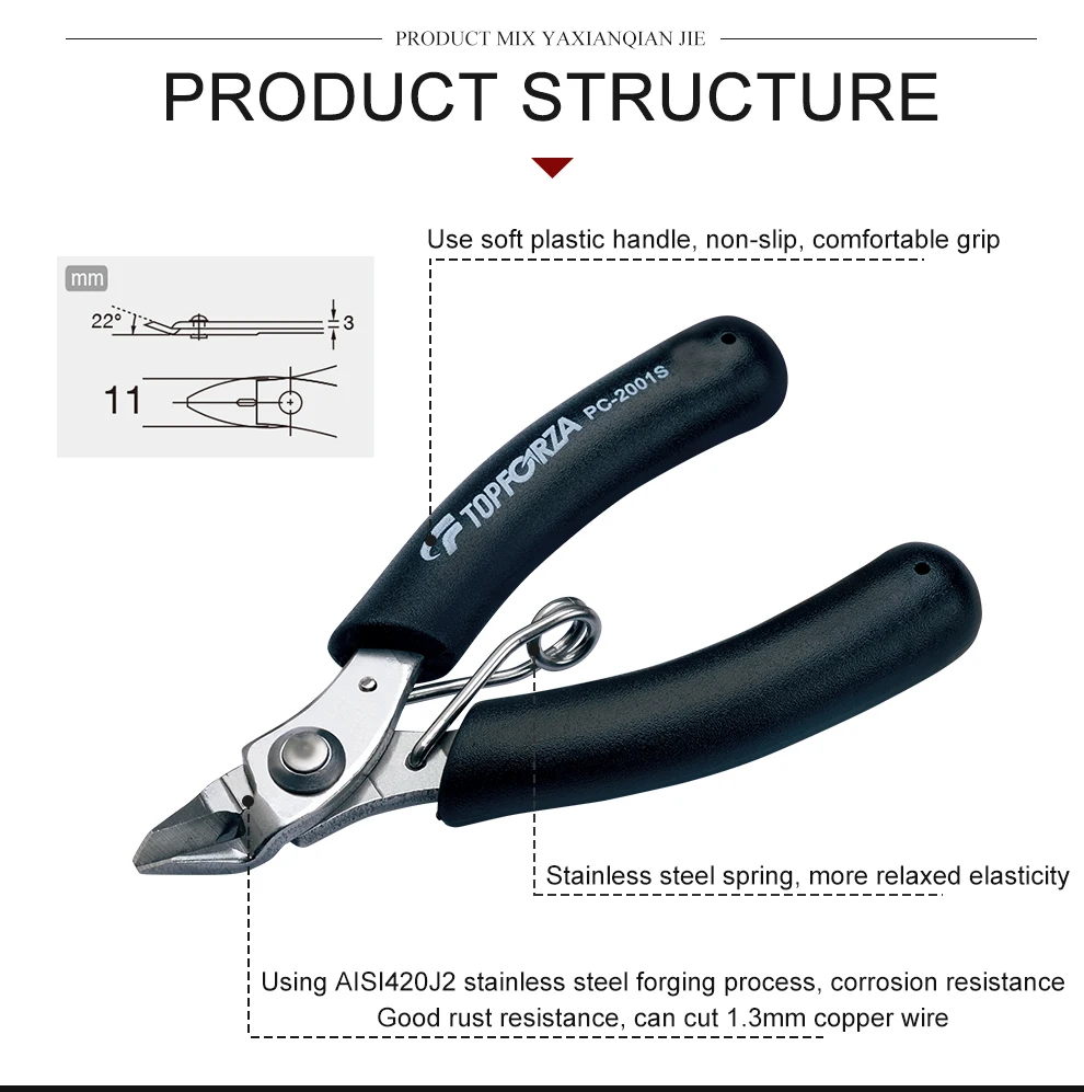 TOPFORZA, Сделано в Тайване, резцы для срезания проволоки, маленькие плоскогубцы для скручивания, диагональные плоскогубцы для резки сбоку, мини электронные ножницы, Микро ножницы, внутренние Пружинные точные клещи, инструмент для изготовления ювелирных изделий