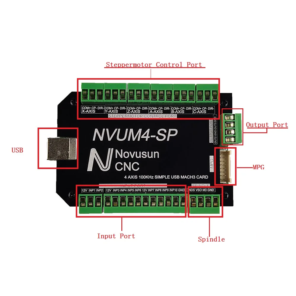 1) Поддержка USB; 2)10 портов фотоэлектрический изолированный входной интерфейс для обычных цифровых данных; 3) 3 порта фотоэлектрический изолированный выходной интерфейс для обычных цифровых данных; 4) 1 порт 0-10 В Скорость вращения шпинделя аналоговый выходной интерфейс (можно изменить на выход ШИМ); 5) может поддерживать шаговые системы 3-6 осей, импульсный выход 100 кГц для каждой оси; 6) чип управления движением руки; 7) совместим с входом MPG, поддерживает цифровой дисплей MPG от нашей компании.