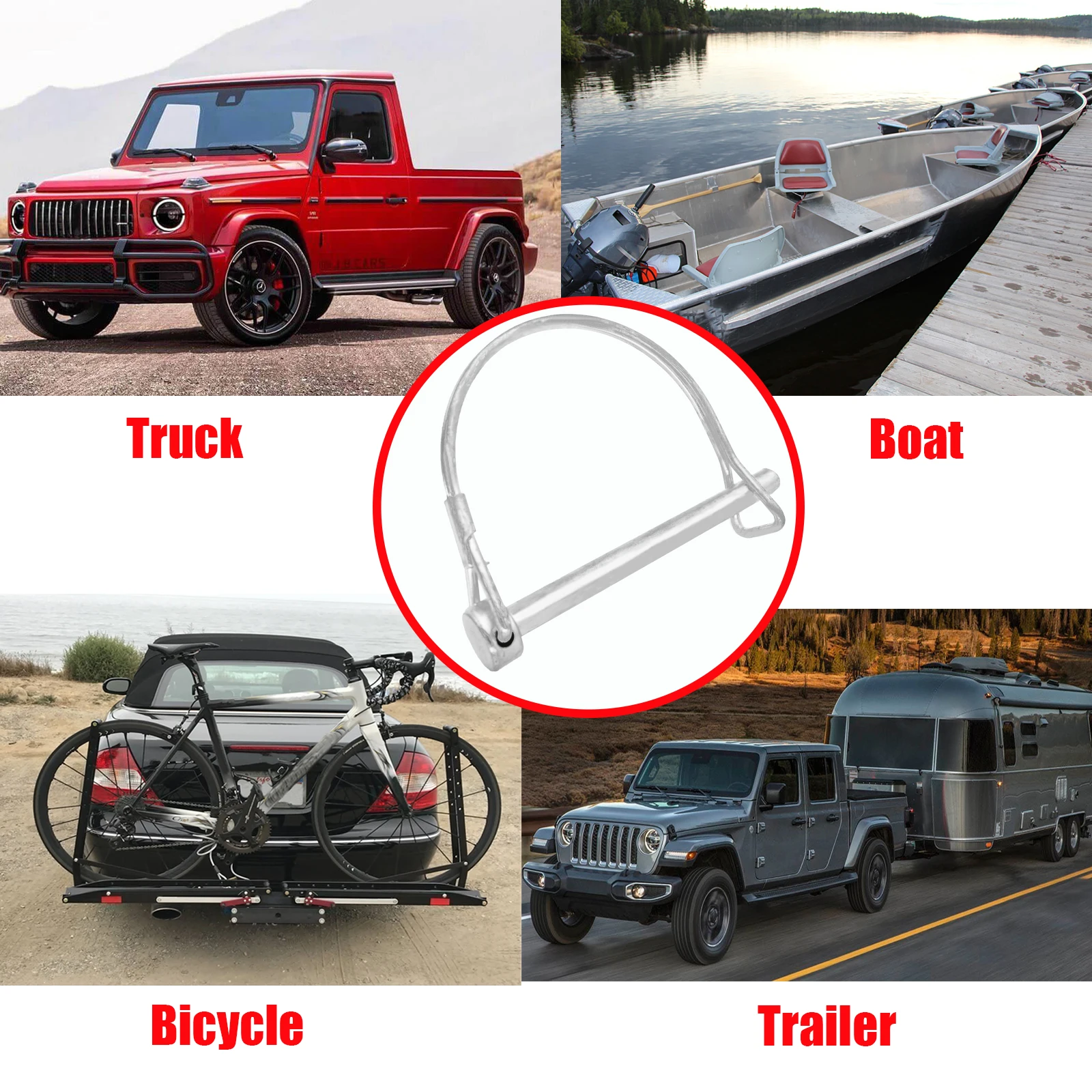 -- Предохранительный штифт соединителя диаметром 1/4 дюйма и длиной 2-3 дюйма делает его универсальным, чтобы подходить к самым разным муфтам для прицепов.