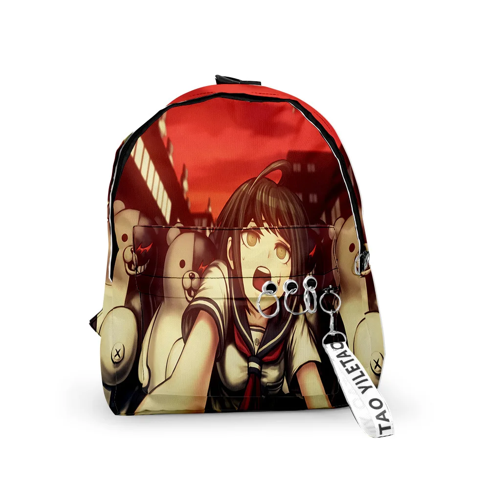 Сумка Danganronpa для отдыха с цепочкой для ключей, школьный рюкзак с 3D принтом аниме Dangan Ronpa Косплей Монокума, мужские сумки Размер: длина 29 см * 12 см * 40 см
