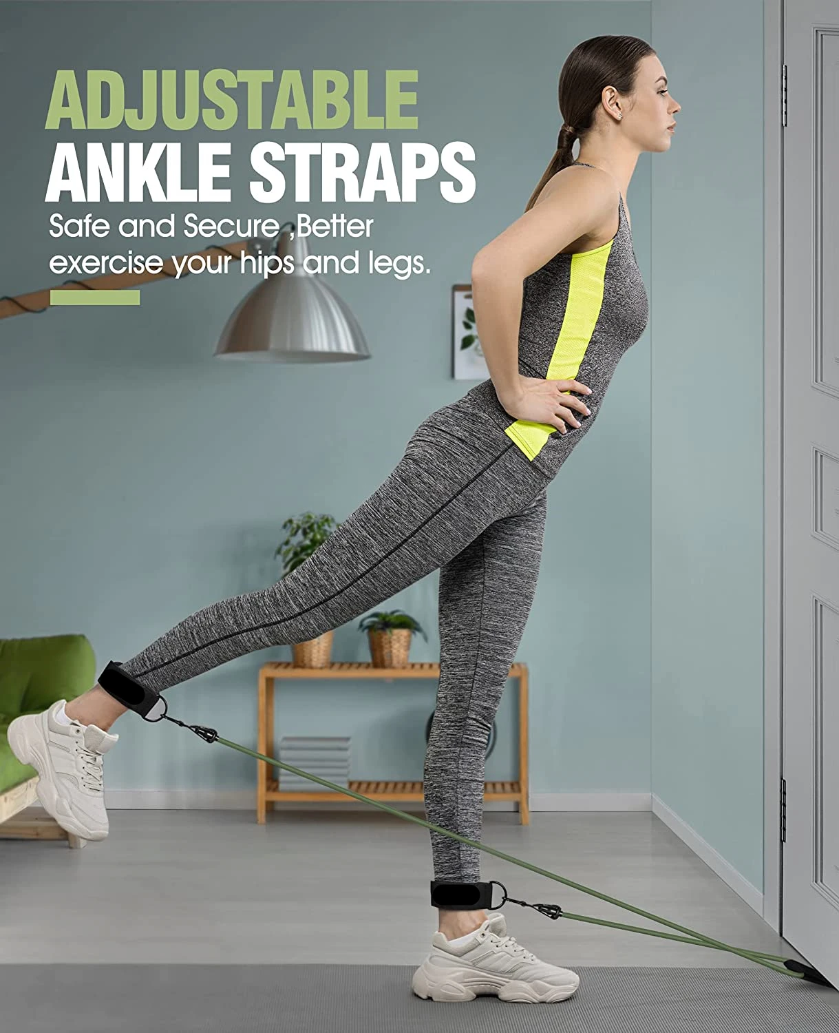 【Эффективное создание идеального тела 】-наш набор сопротивления-идеальное оборудование для тренировки мышц и сжигания жира. Не только тренировка приседаний, отжиманий, поднятия ног, досок и трицепсов для укрепления очень эффективны, но и помогут вам улучшить координацию, выносливость, гибкость. Ремешки на лодыжках лучше укрепляют мышцы ног. Для женщин, которые хотят оставаться в форме, он также может помочь тренировать бедра, моделировать идеальные мышцы груди и живота и показать очаровательный изгиб тела.