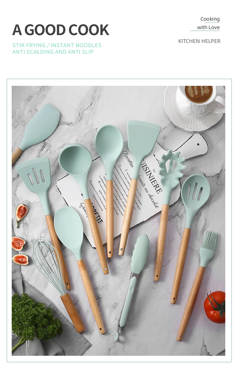 Силиконовые Пособия по кулинарии набор посуды с антипригарным покрытием шпатель лопата с деревянной ручкой Кухня посуда с коробка для хранения 9/12 шт Кухня аксессуары