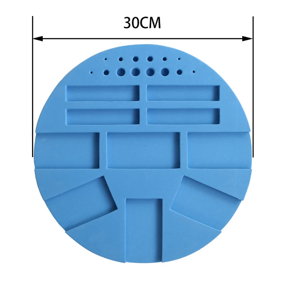 Спецификация: Материал: пластик Размер: диаметр 30 см/11,02" Функция продукта: используется для хранения буровых кастрюль, буровых ручек и т. д. Примечание: В связи с различиями мониторов и эффектами освещения реальный цвет товара может немного отличаться от цвета на фотографиях. Спасибо! Возможны отклонения в 1-3 мм вследствие измерений вручную. Посылка включает в себя: 1 набор инструментов