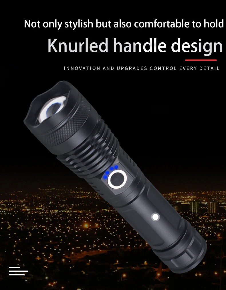 3. 4 levels of power display: each level has 25% power, real-time control of flashlight battery life
