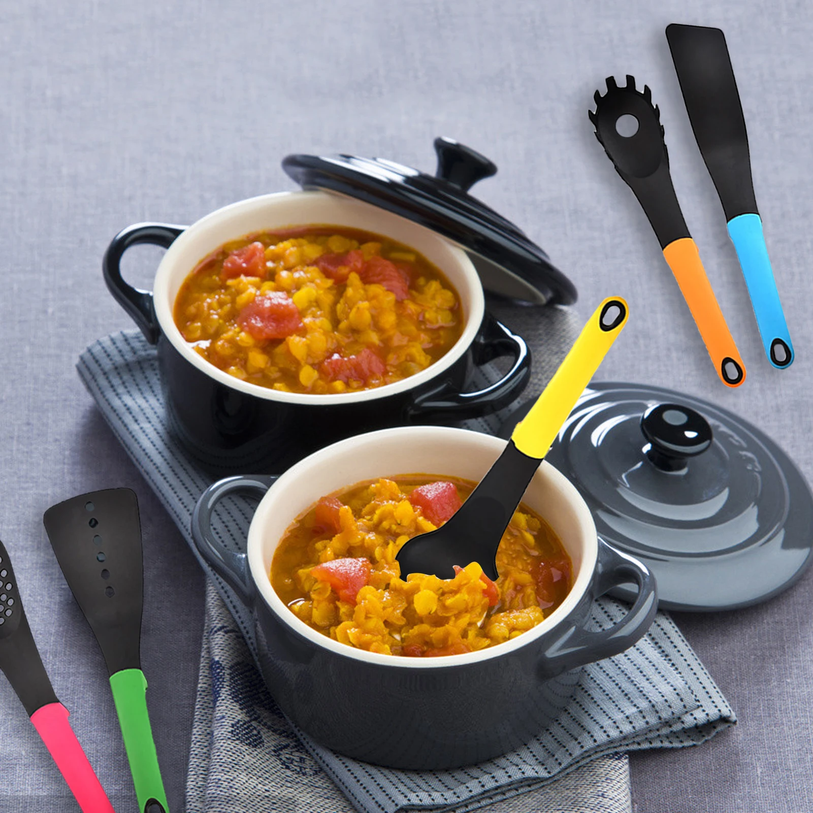 6 шт. нейлоновая кухонная утварь в основном удовлетворит ваши ежедневные потребности в приготовлении пищи и выпечки.