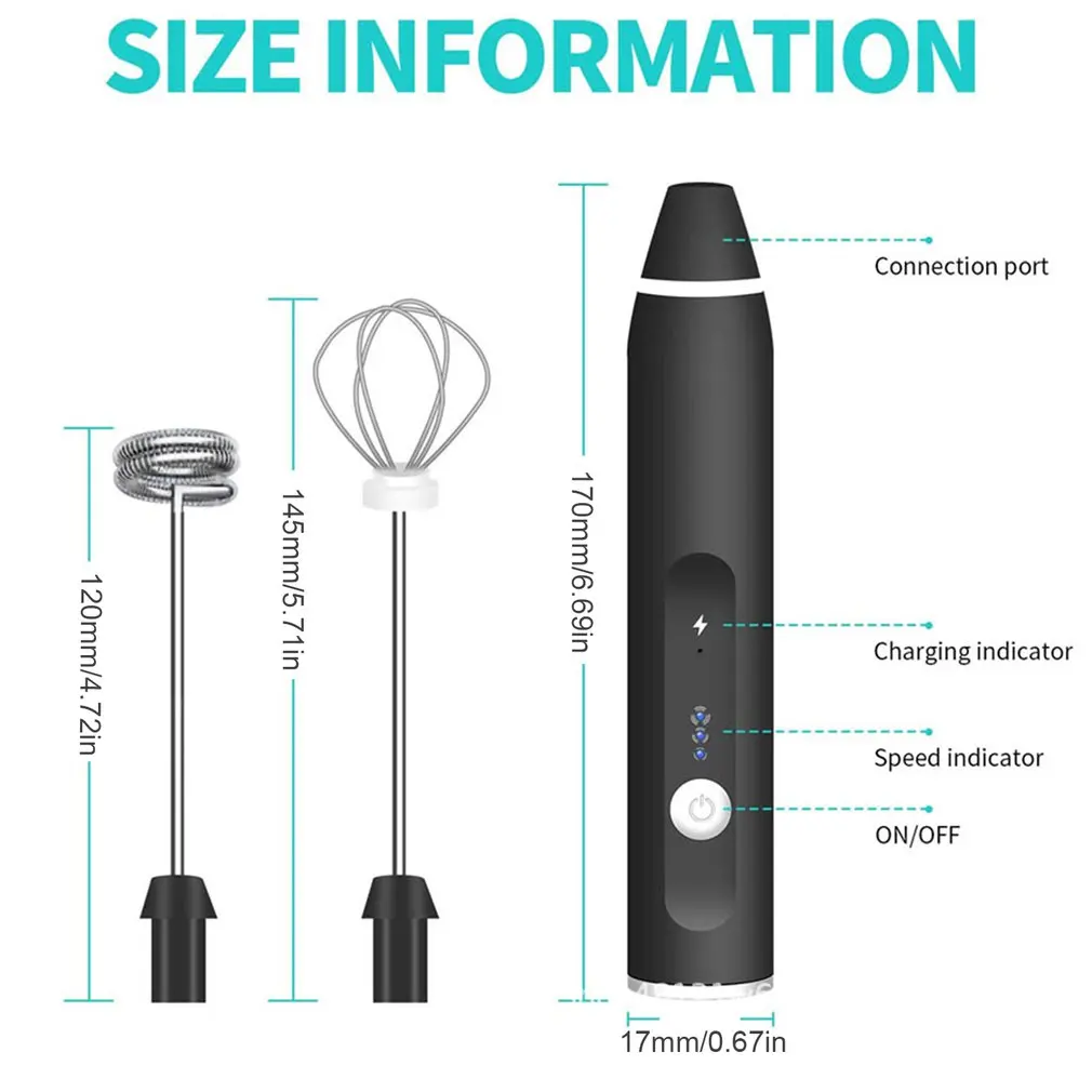 1. Перезаряжаемый дизайн: в этом мощном молочном пене используется usb-зарядка. После полной зарядки вы можете использовать молочный пенообразователь в течение 1 месяца или более.