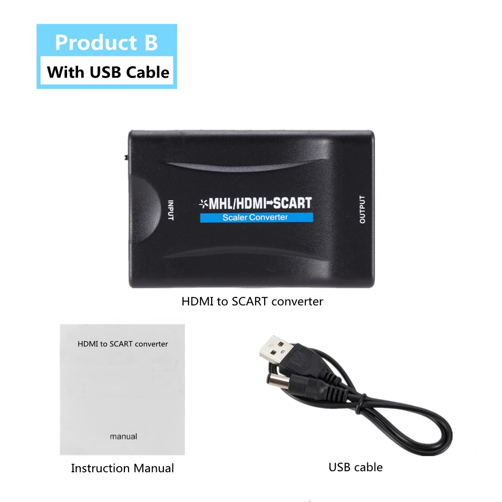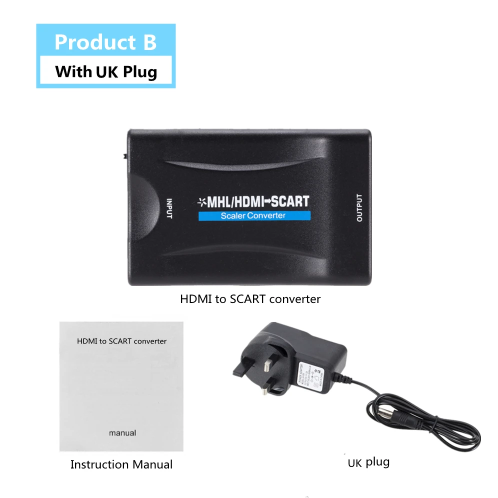 Grwibeou 1080P SCART К HDMI видео аудио высококлассный конвертер адаптер для HD TV DVD для Sky Box STB Plug and Play с кабелем постоянного тока