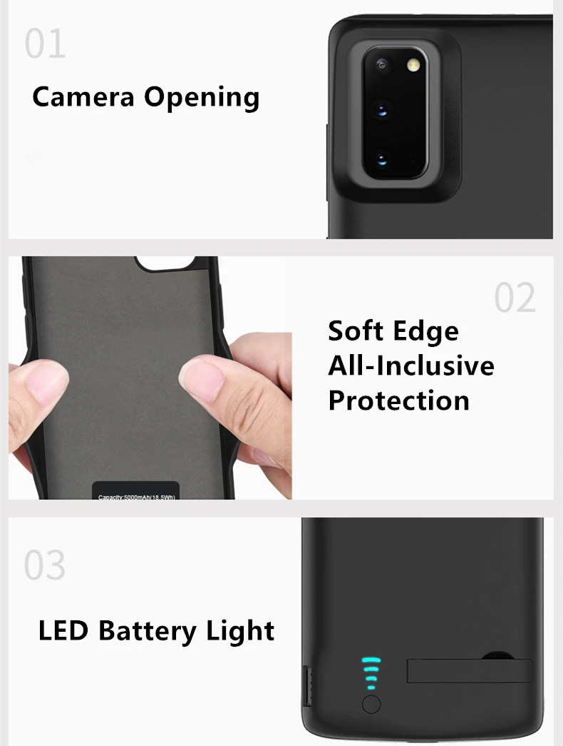 Легкая установка и светодиодный индикатор: мягкая верхняя часть облегчает установку. Вставьте телефон в чехол-плотно прижмите телефон к нижней части-Нажмите кнопку «назад» в течение 3 секунд. Кроме того, вы можете нажать на заднюю индикаторную лампу в течение 3 секунд, чтобы проверить, сколько энергии осталось. (0%-25%-50%-75%-100%)