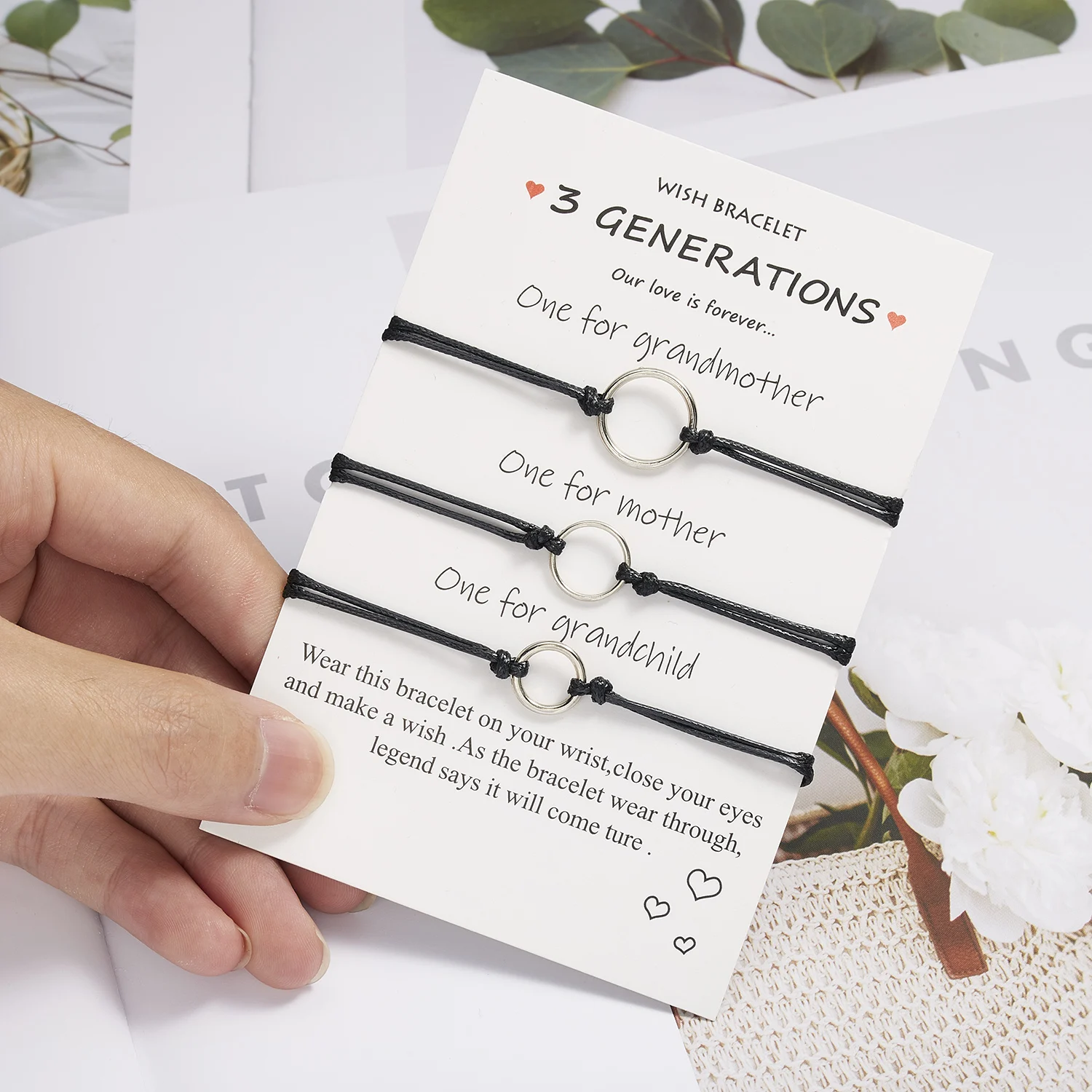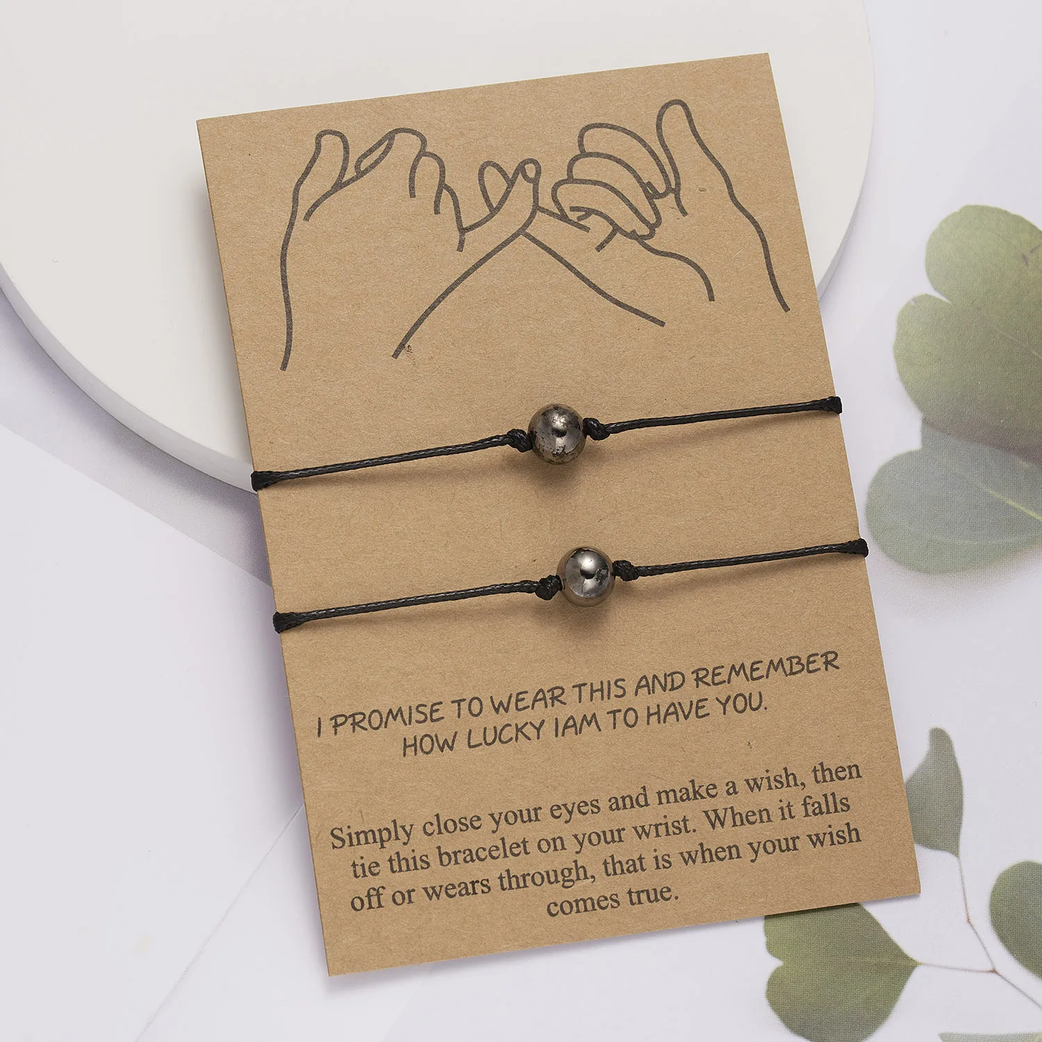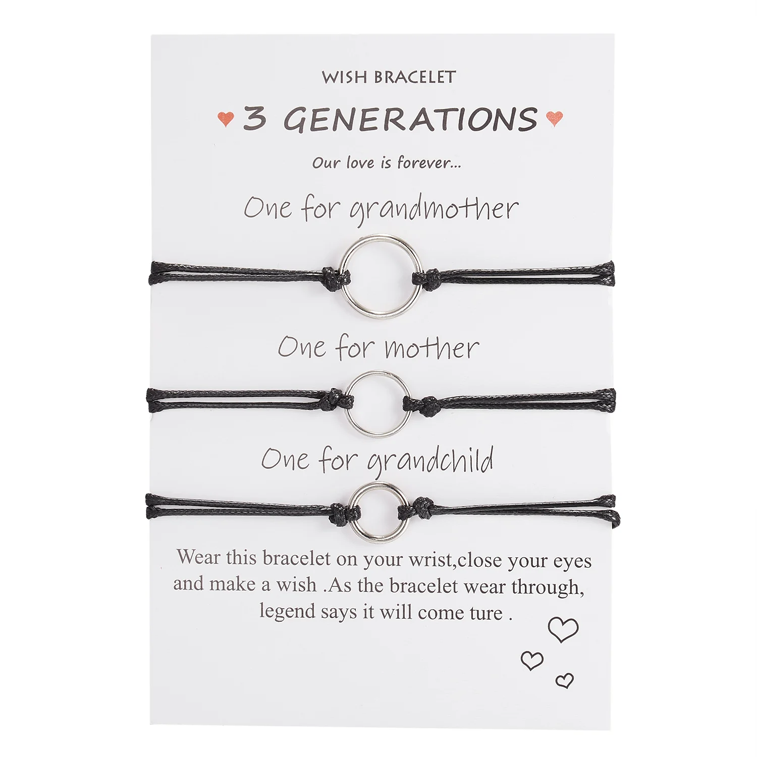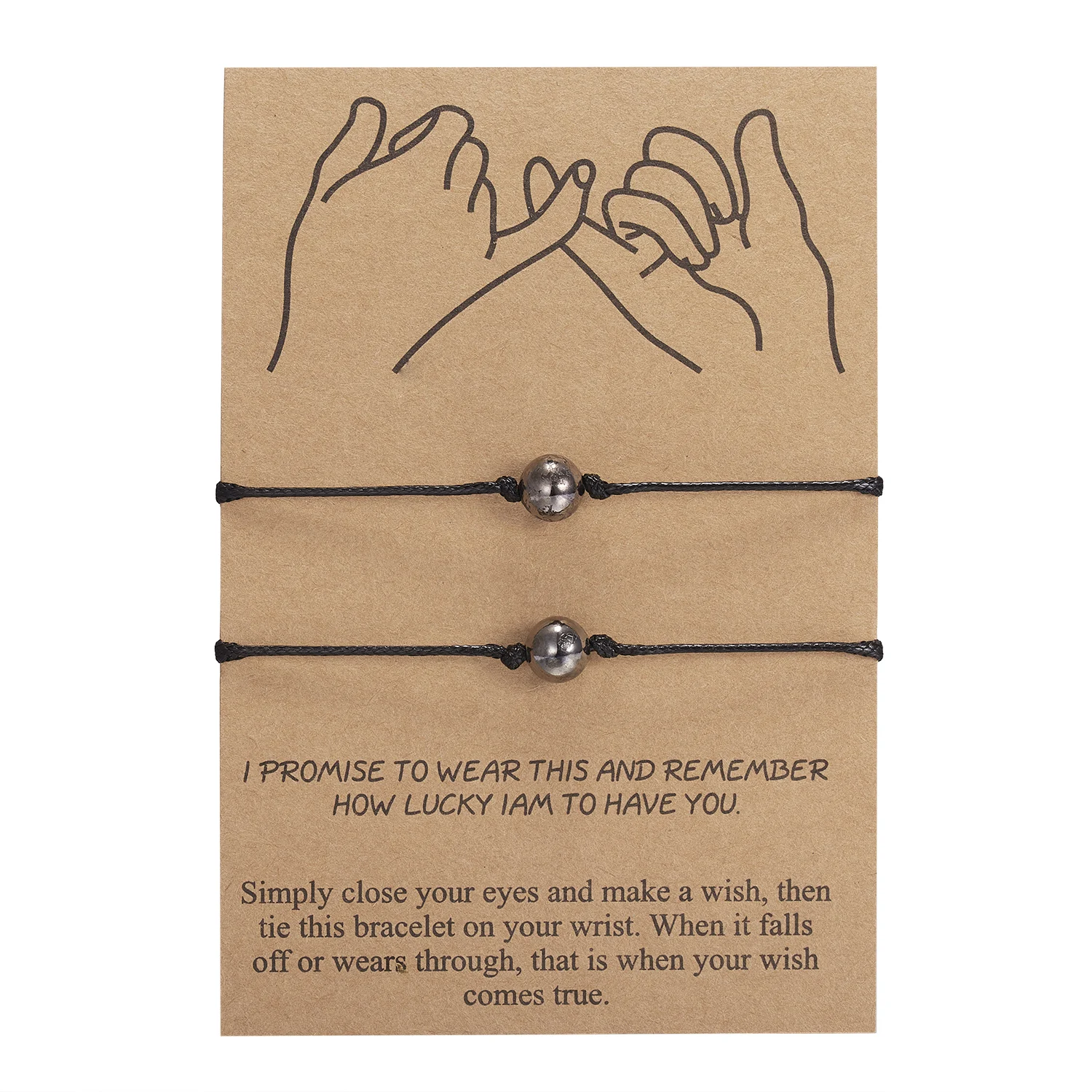 2 шт./компл., браслеты-шармы с сердечками и круглыми бусинами для женщин и девочек, браслеты ручной работы с черными нитями, ювелирные изделия с карточкой, подарок на день матери