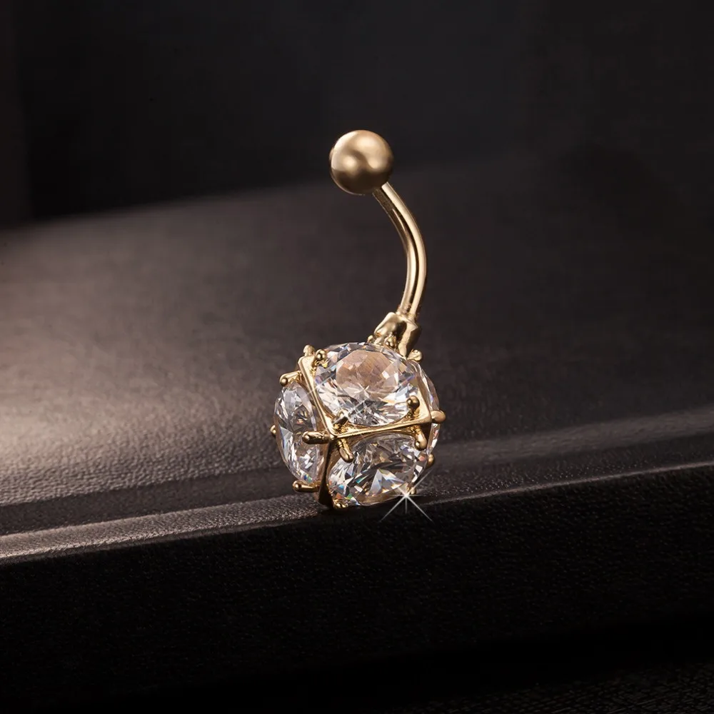 1 шт., 14 г, блестящий прозрачный CZ мяч, кольца на пупках, Ретро стиль, бикини, красочный прозрачный кубический Пирсинг живота, пупок, пирсинг, Nombril