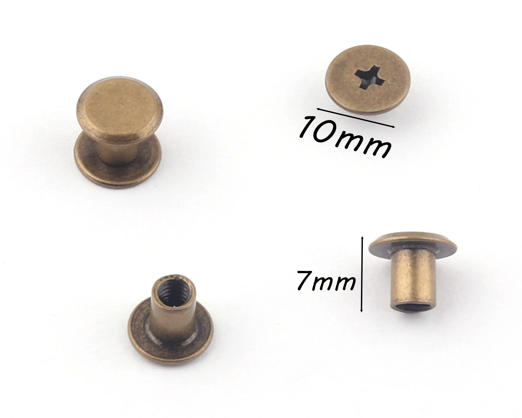 Бронзовые винтовые заклепки 7*10 мм, металлические кнопки, шнековые шпильки, шнековые шпильки для сумочки, кожаный ремень, шнековые шпильки, заклепки