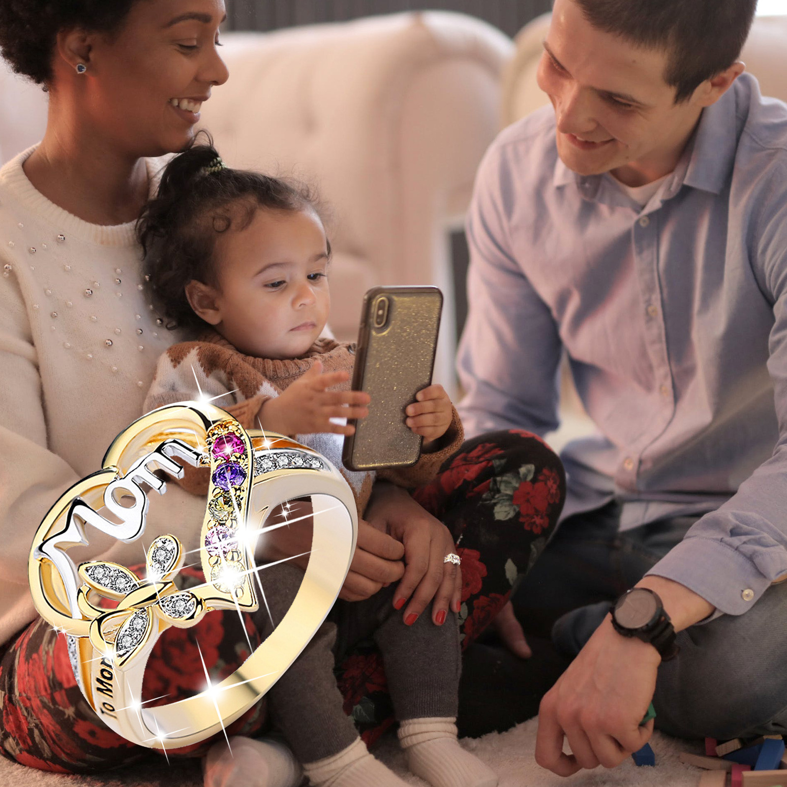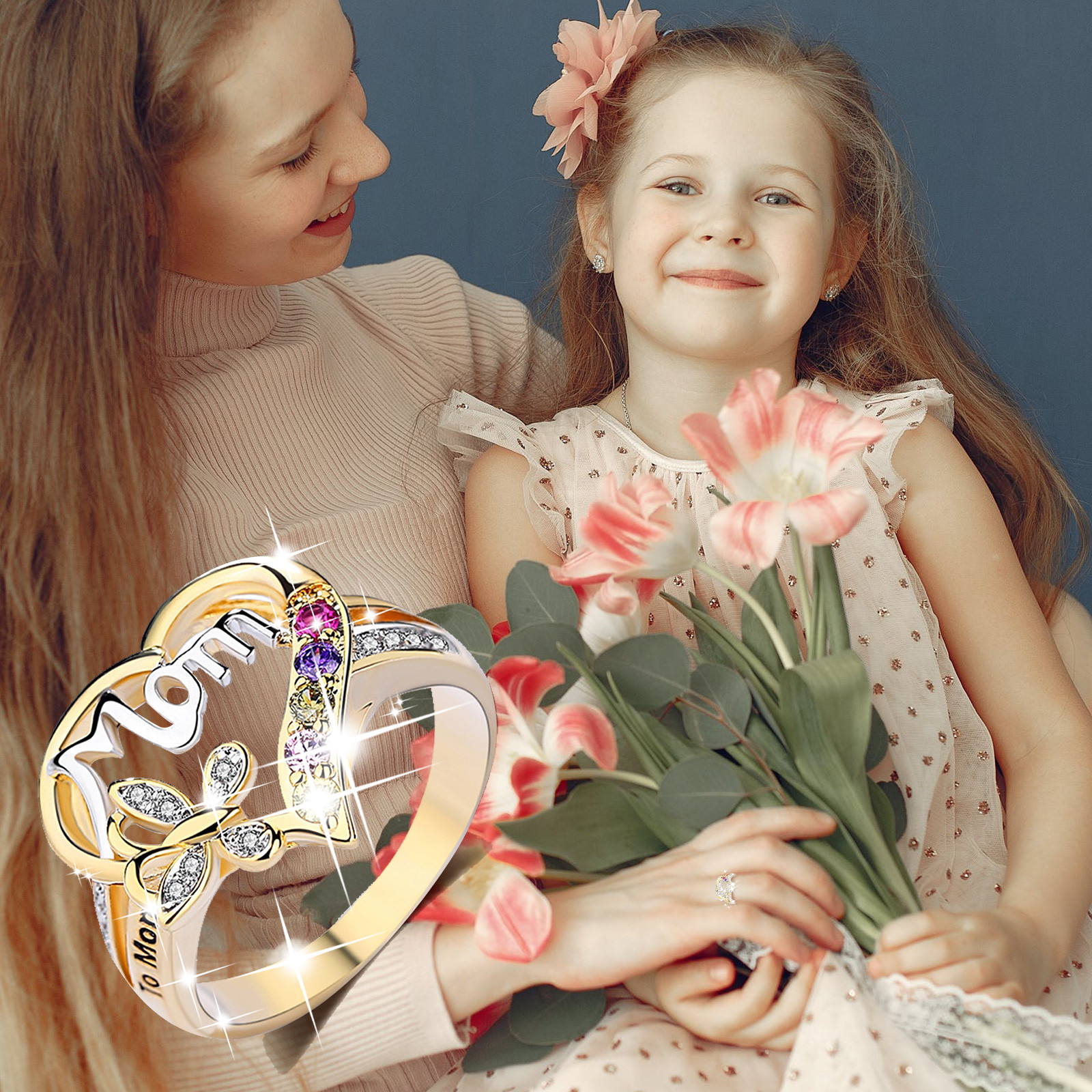 Женские кольца, кольца для мам, креативное кольцо с сердечком и бриллиантами, кольцо на день матери, подарок, Универсальное кольцо 05 *