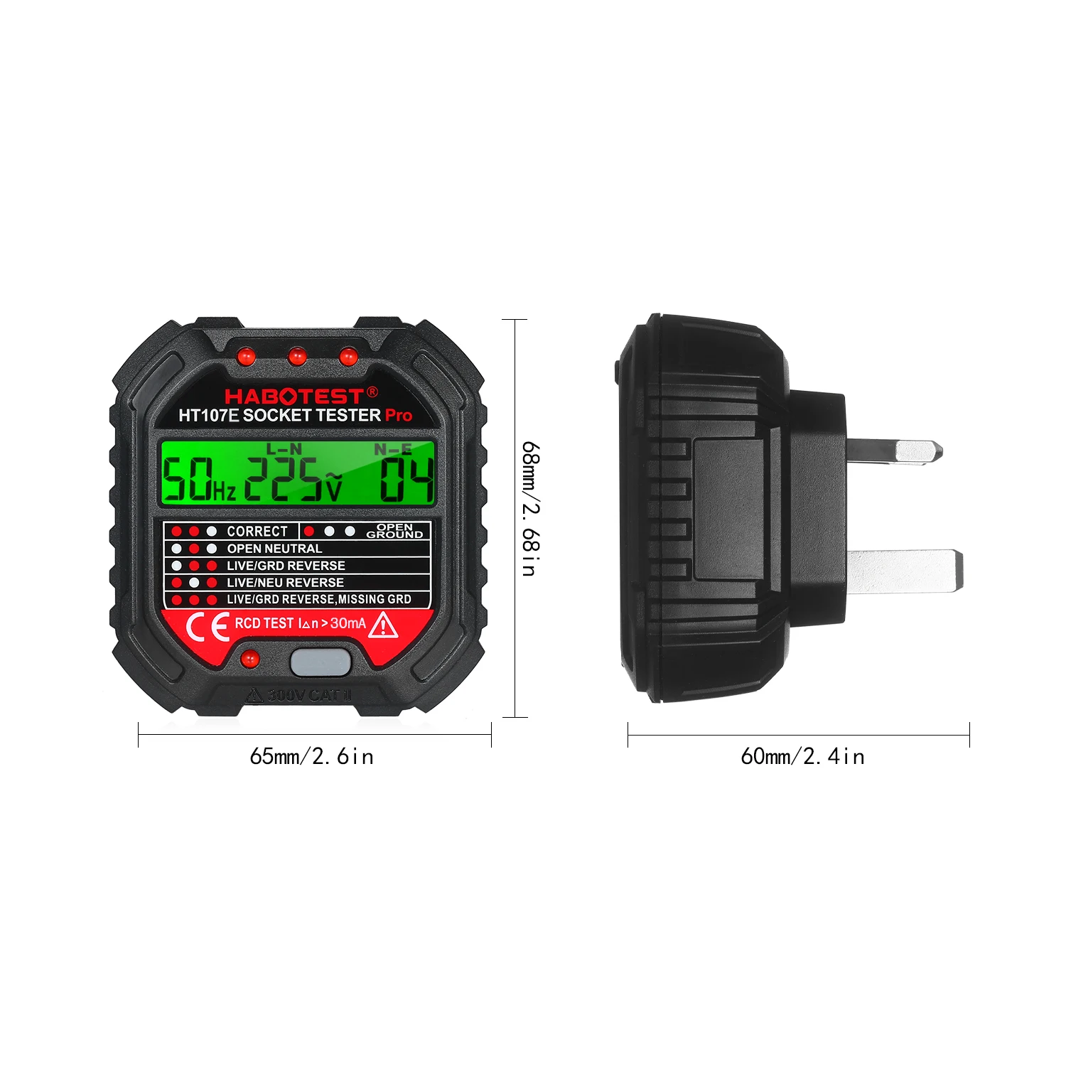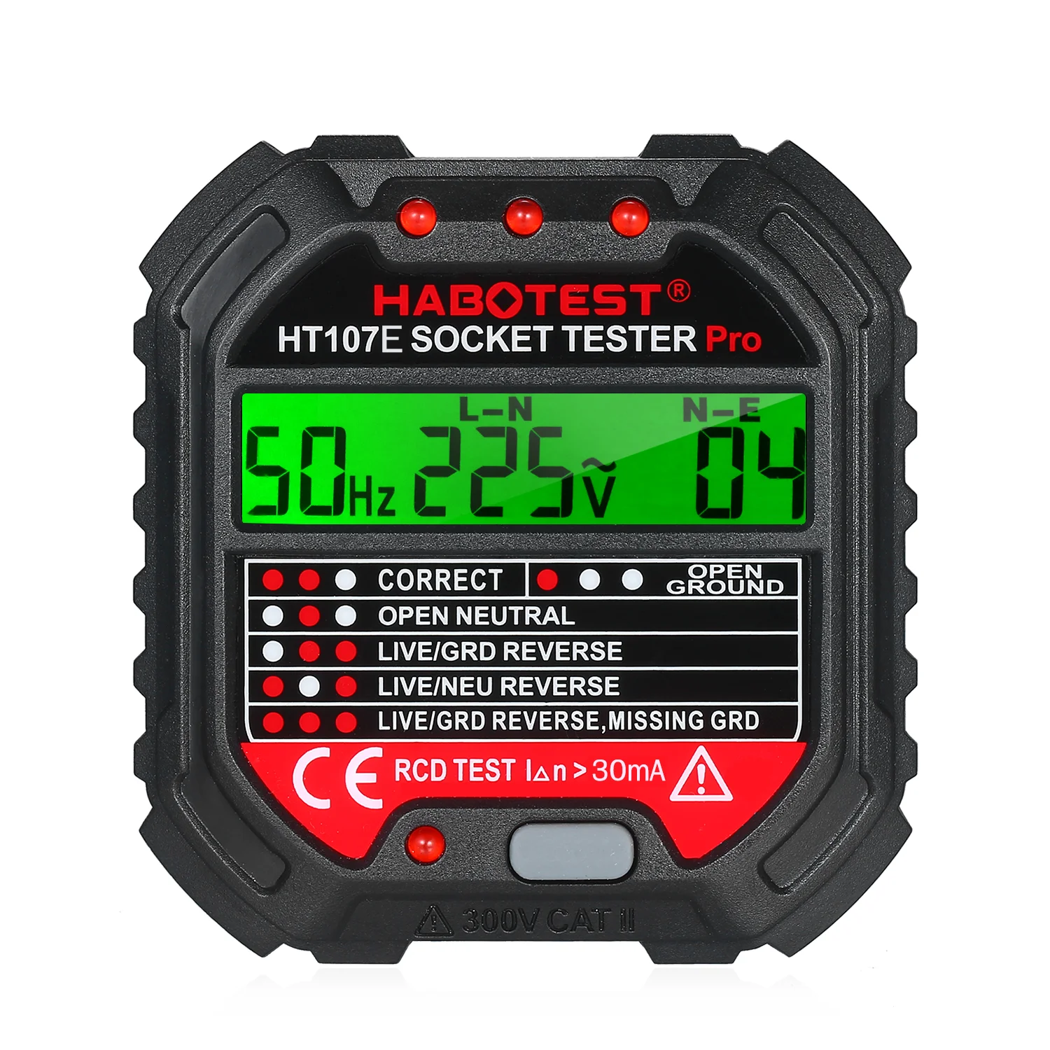 Расширенный тест на гнездо может помочь вам проверить проводку дома и полярность подключения гнезда, он также может использоваться для тестирования утечки отключения. Это профессиональный тестер гнезд, который быстро определяет, является ли соединение провода гнезда правильным или нет. С функцией тестирования RCD/GFCI, это более практично и безопасно.