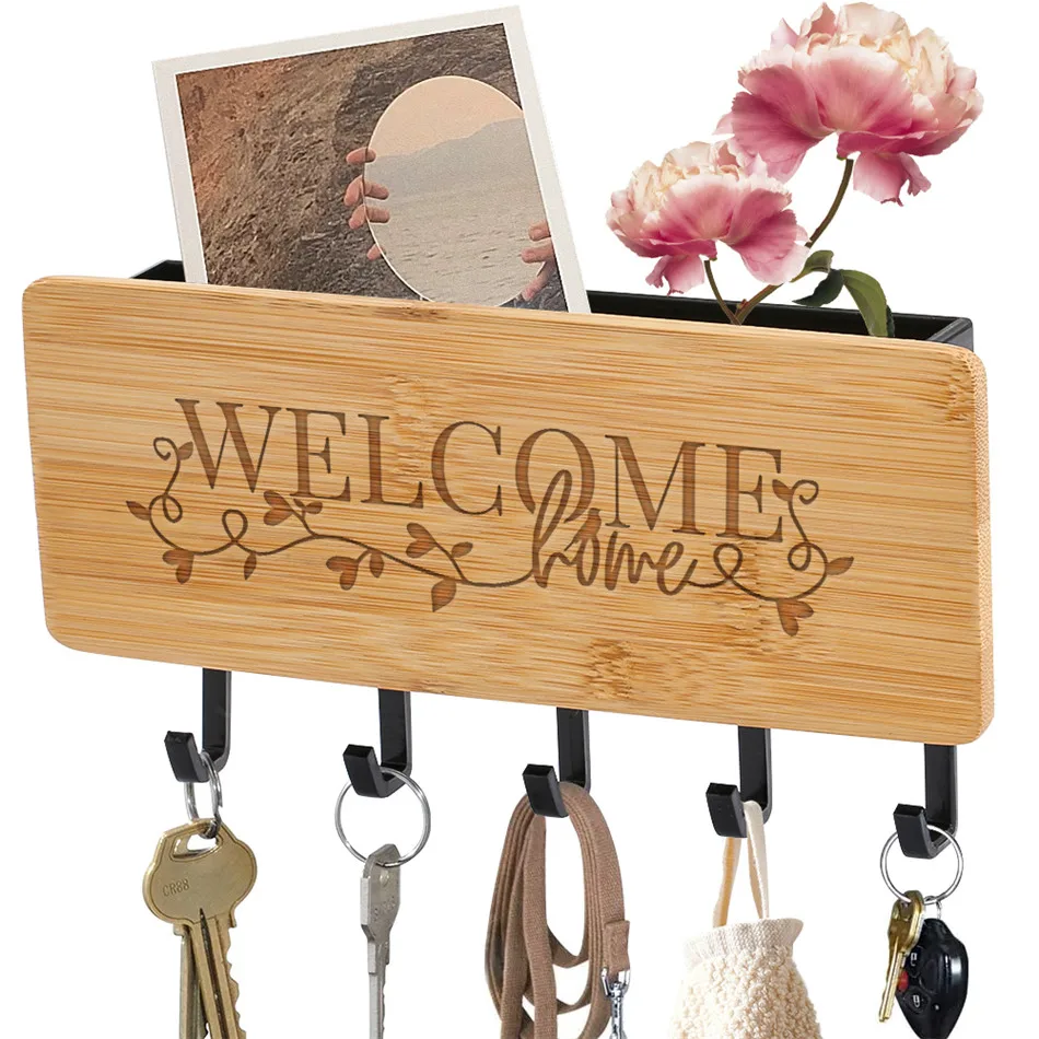 Простой и экологически чистый: основной материал полки для ключей-бамбук и дерево, безопасные для здоровья, простые и экологически чистые.