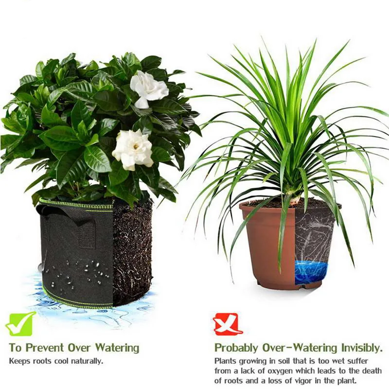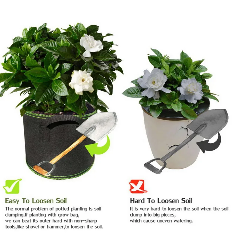 <Воздухопроницаемость: нетканый материал означает, что ваши корни растений остаются газированными и обрезаны воздухом, что не позволяет им окружать корни.