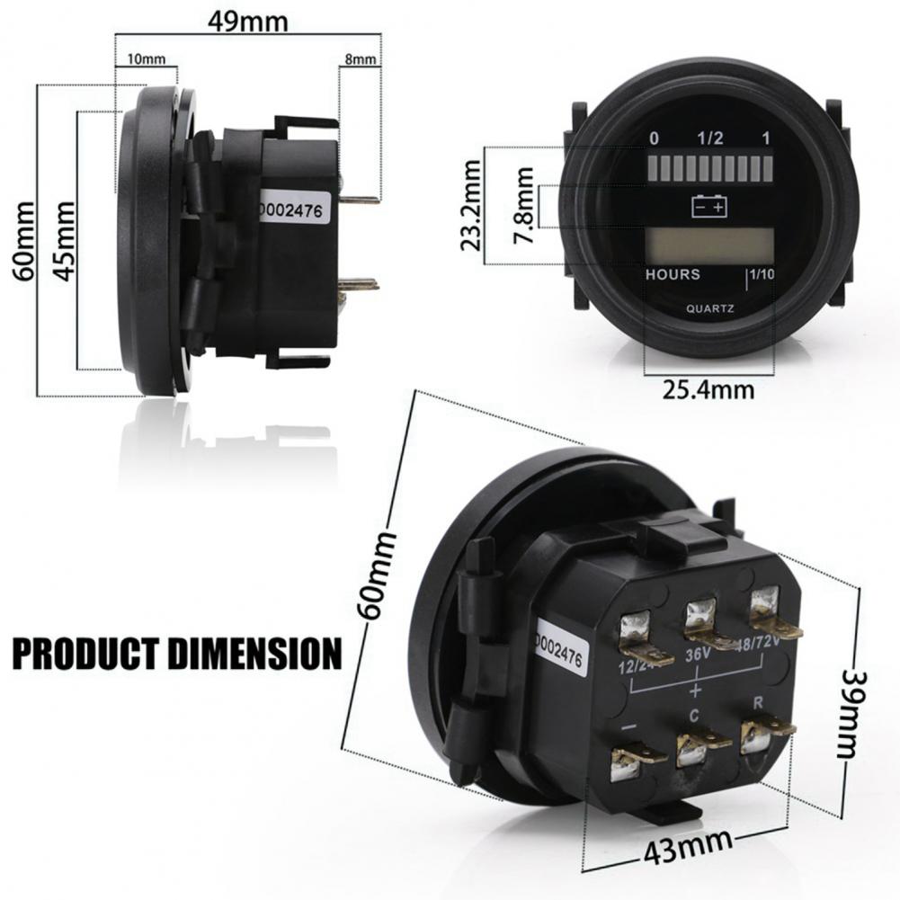 Индикатор батареи подходит для свинцово-кислотных батарей, которые могут использоваться с батареями 12 В, 24 В, 36 В, 48 В, 72 в.