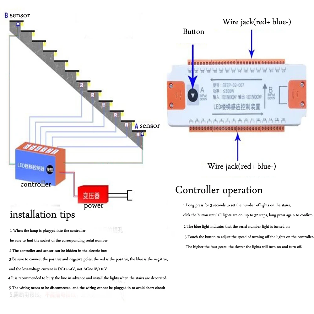 2-продукт низкого напряжения 12V-24V, подключите к сети питания трансформатор. Не подключайте напрямую 220 В, это сгорит контроллер.