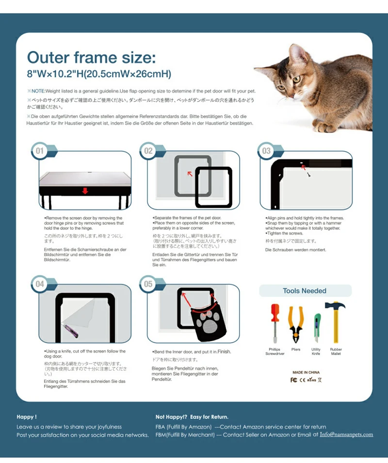 Новая дверь для домашних питомцев, двери для собак, безопасные Запираемые уличные двери для собак, кошек, ворот, дверей и окон дома, экраны входят, легко устанавливаются, ворота
