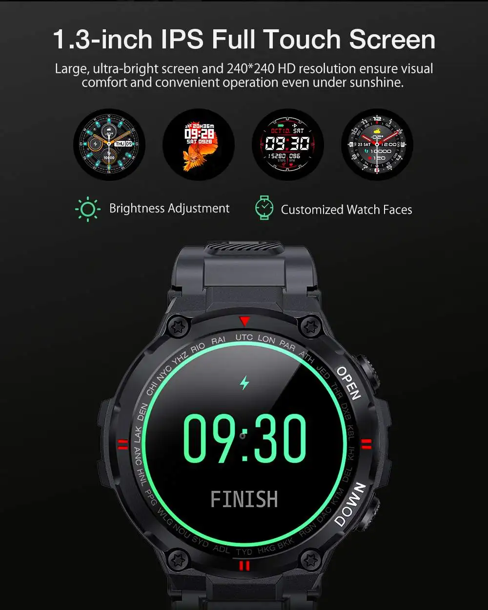 1. 1.3inch Full-touchScreen + Convenient Button Operation + Sports Wear-resistant Shell