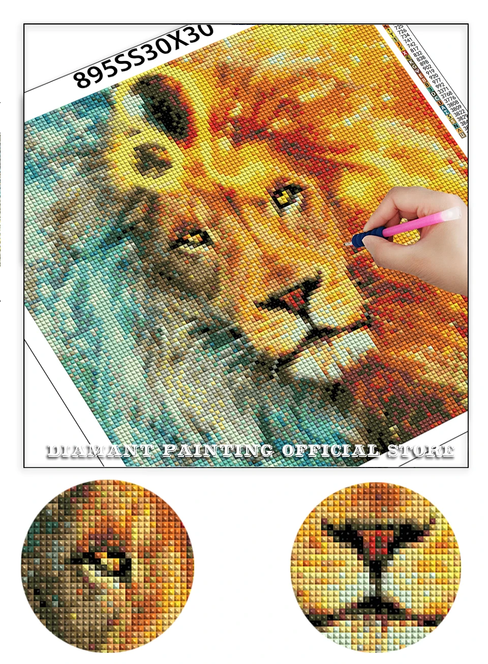 Алмазная вышивка крестиком-это новый проект ручной вышивки своими руками с большим творческим подходом, чем вышивка крестиком. Недавно разработанная Смола 2,5 мм полностью квадратная Алмазная картина насыщена цветом, с 16 гранями 5D эффектом и отличным блеском. Он может обрабатывать цветочные узоры и живописные, животные и другие рисунки на заказ алмазной мозаики. Картина Daimond стильная, благородная и элегантная. Готовая Алмазная краска подходит для гостиной, спальни, учебы.