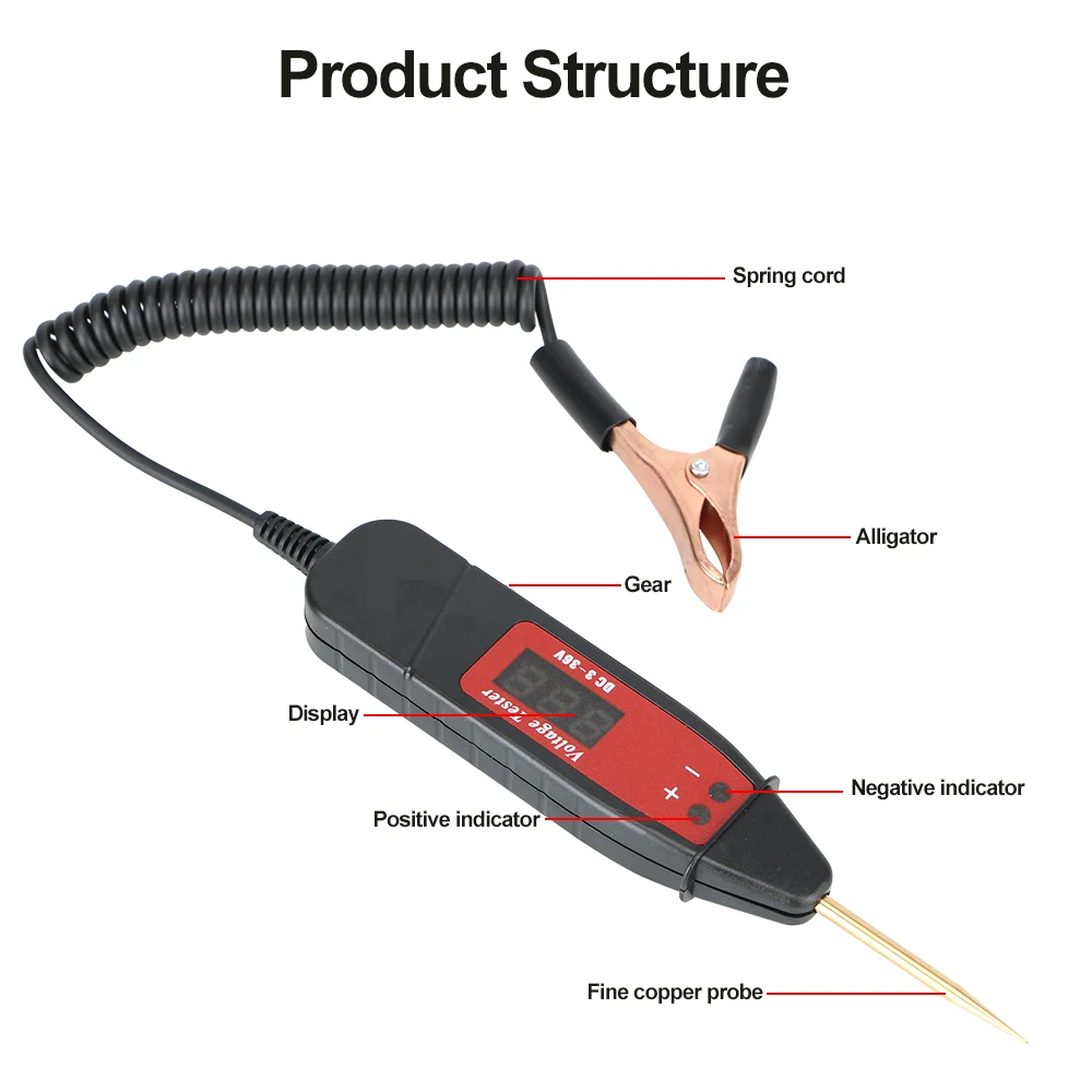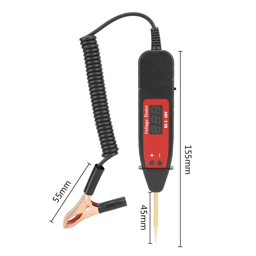 100% новый и высокое качествоОн гибкий и не деформируется легко.Легко работать с формой ручки.Четкий цифровой дисплей для точного напряжения индикации, с точностью до 0,1 вольтИгольчатая тестовая головка может быть удобно подключена к зажиму, игольчато-острый Зонд из нержавеющей стали позволяет легко пирсинг и труднодоступные областиПредназначен для обнаружения неисправностей цепи низкого напряжения в транспортном оборудовании, испытательный светильник для проверки предохранителей, выключателей, арматуры, дистрибьюторов и электрических цепей, чтобы быстро и легко находить короткие и открытые цепиДизайн индикатора полезен для обнаружения положительных и отрицательных полюсов аккумулятора или цепи.Поддержка короткого замыкания и открытого замыкания, тест системы зажигания, тест производительности двигателя, тест системы зарядки, тест производительности автомобильного аккумулятора, тест на полярность цепи.Он используется для автомобилей, мотоциклов, бульдозеров, роликов, экскаваторов и других операций по техническому обслуживанию транспортных самолетов.Примечание:Изделие делится на две передачи