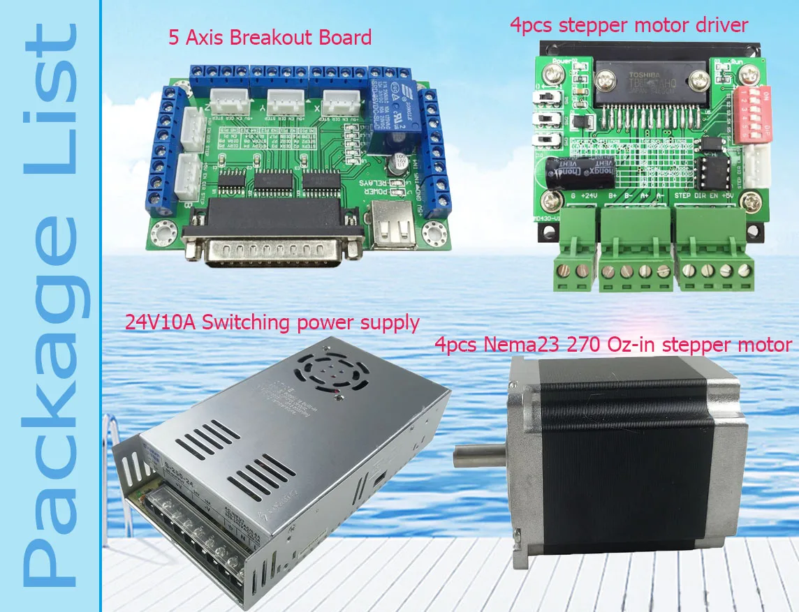 1 шт. 5 aixs зеленая плата преобразования частоты 4 шт. TB6560 4 шт. Nema23 шаговый двигатель 1 шт. DC24V 250 Вт источник питания, включая некоторые аксессуары