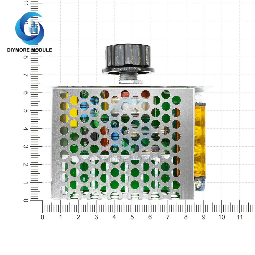 Working Voltage: AC 220V Maximum Power: 4000W (connected resistive load) Voltage Regulation:AC 0-220V,Start from AC 10V Dimensions: 89(L) x 59(W) x38(H)MM/3.35x2.56x1.5" Protection: Anti-spike, Surge, RC absorption (EOC) Type:Governor/Regulator/Motor speed controller/Dimmer Module Some Application:Electric furnace, water heater, lamps, small motor, electric iron etc.