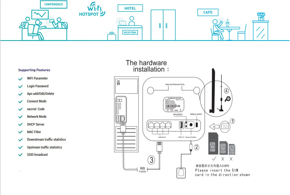 1. Поддержка сети 2G/3G/4G, полоса частот LTE может быть настроена.
