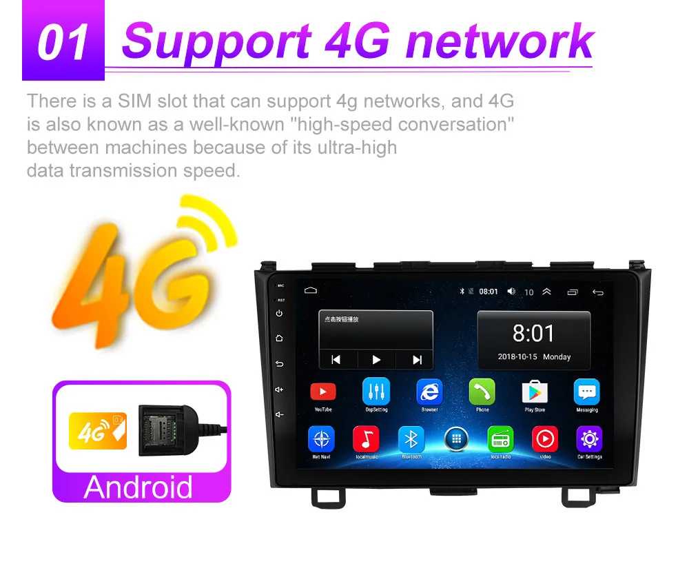 Тип 4G имеет слот для SIM-карты 4G и встроенный Wi-Fi, независимо от того, где вы находитесь за рулем, вы получите удовольствие от интернет-серфинга, сделать его возможным для онлайн-навигации/музыки/фильма и т. Д. Введите SIM-карту Перед включением устройства. Включает разъем для карт 4G и антенну 4G!