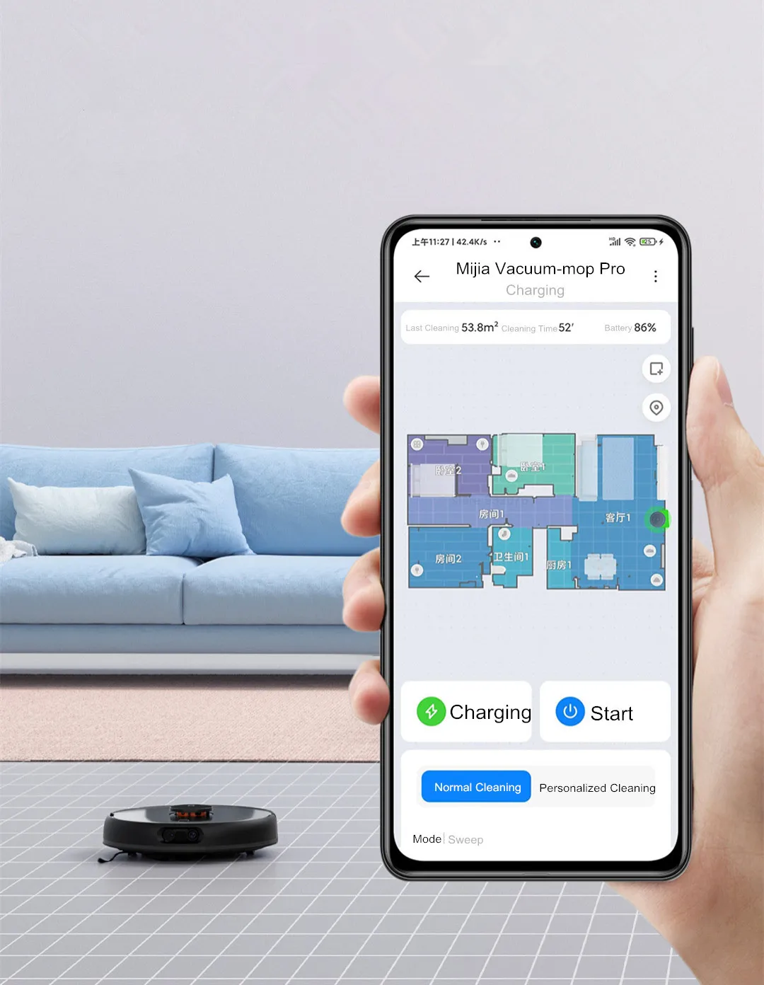 После подключения роботу находить Mijia App, вы можете дистанционно управлять роботом, даже если вы находитесь не в домашних условиях, график будет назначен для уборки, в любое время, где бы вы ни находились, чтобы очистить дом легко.