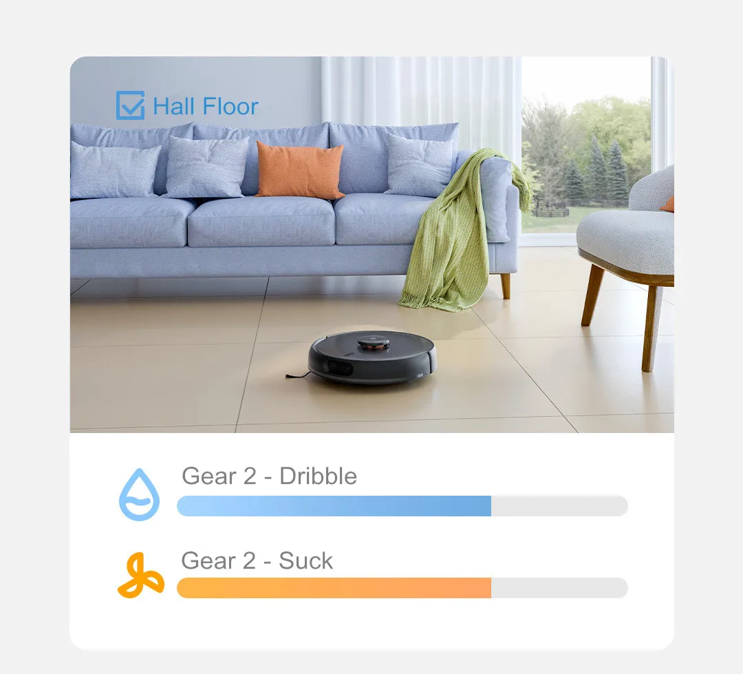 Вы можете установить виртуальная стена или выберите ограниченная зона через Mijia приложение, во время процесса очистки, ограниченная подготовлены для использования с can установить и легко избежать, тогда он закончит чистку.