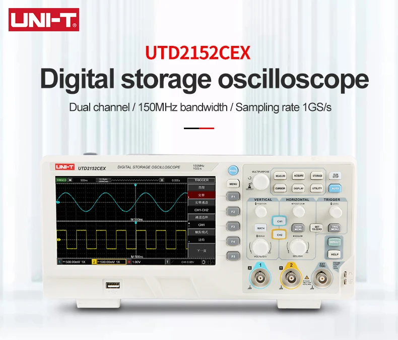 UNI-T UTD2152CEX Automotive Oscilloscope Digital 150Mhz 2CH Storage Osciloscopio 1GSa/s Sample Rate USB Oscilloscope