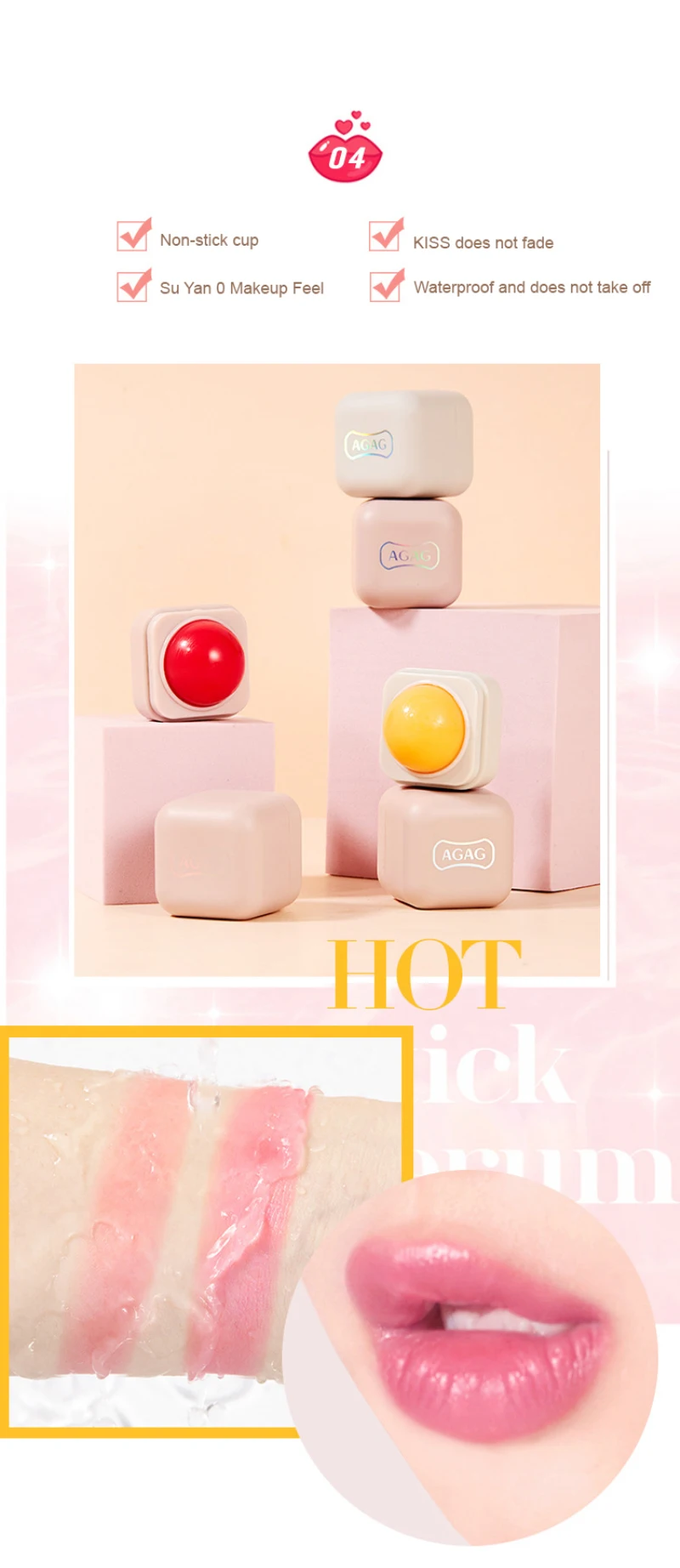 Изделие имеет сферическую конструкцию, которая соответствует форме губ и удобна в использовании.