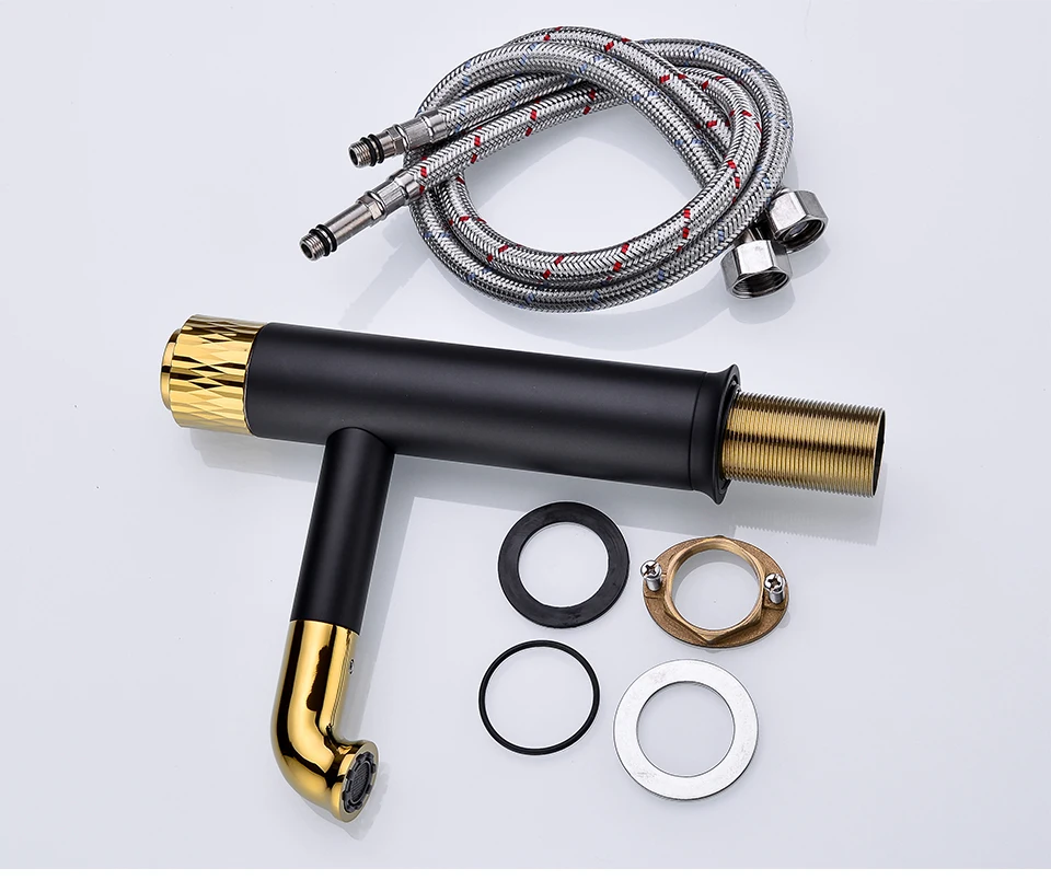 Современный и прочный дизайн-матовая черная отделка обеспечивает очень прочную защиту поверхности, что делает кран избегающим коррозии, тускнеет и царапин. Гладкий, долговечный, без капель.