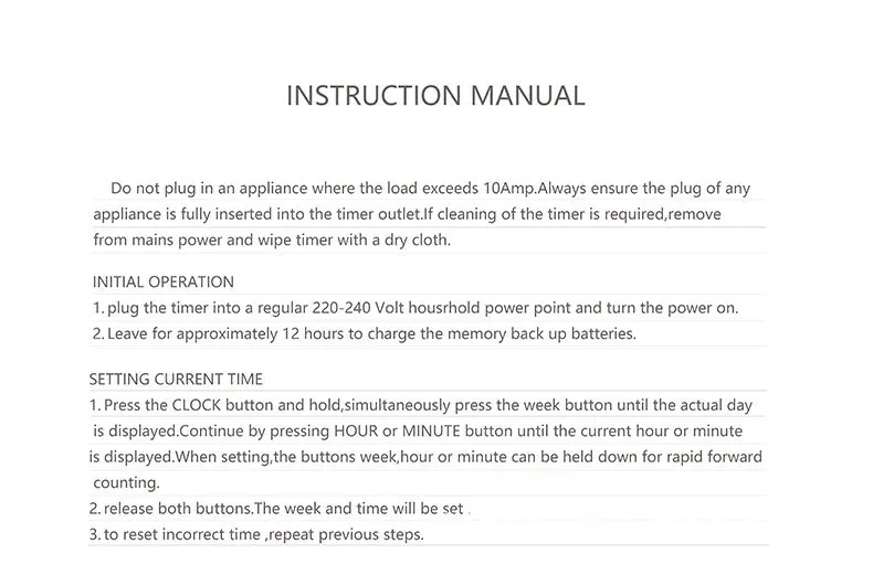 Особенности: 1: Установите четкий экран с операционными подсказками 2: предназначен для домашней безопасности может свободно объединяться. 3: минимальное время установки 1 минута, максимальное время установки недели. 4: медь с высокой проводимостью, никелированный, антикоррозийный, меньший нагрев, оптимизация конструкции меди и длительный срок службы. 5: корпус из импортного поликарбоната, огнезащитный материал, так что более высокая безопасность продукта 6. Самые Качественные материалы, долгий срок службы, самый низкий уровень ремонта 7. Встроенный перезаряжаемый аккумулятор в качестве резервного источника питания в чехол питания от сети, и по-прежнему поддерживает время отображения и хранения данных до шести месяцев и более 8. С перезаряжаемой батареей, зарядный разъем может 9. Сфера применения: рисоварки, диспенсеры для воды, нагреватели, жидкие электрические спирали от комаров и другие электроприборы, аккумуляторы для электромобилей, аккумуляторы для цифровой камеры, аккумулятор для мобильного телефона, безопасность дома и т. д. Описание: Материал: АБС + Поликарбонат Тип штепсельной вилки: штепсельная вилка европейского стандарта Установка: вставной Тип ЕС: Напряжение: 230 В 50 Гц Номинальная мощность: 230 В переменного тока/16 А/3600 Вт Великобритания: Напряжение: 240 В 50 Гц Номинальная мощность: 240 В переменного тока/13 а/3100 Вт США: Напряжение: 125 В 60 Гц Номинальная мощность: 125 В переменного тока/15 а/1800 Вт Время установки: 1 минута Рабочая температура: -10-55 Цельсия Точность: ± 1 мин/Пн. Размер: прибл. 11,5*6*3,4 см Цвет: белый Прикладное напряжение: 250 В переменного тока Коммутационная Емкость: 16А Максимальная нагрузка: 3500 Вт