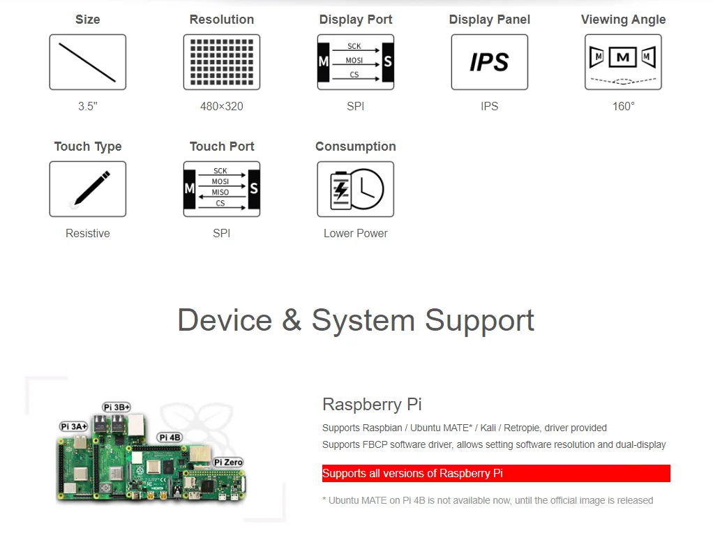 3,5 дюйм резистивный сенсорный экран Дисплей (B) для Raspberry Pi, 480 × 320, IPS Экран, SPI3,5 "сенсорный дисплейДля Raspberry Pi