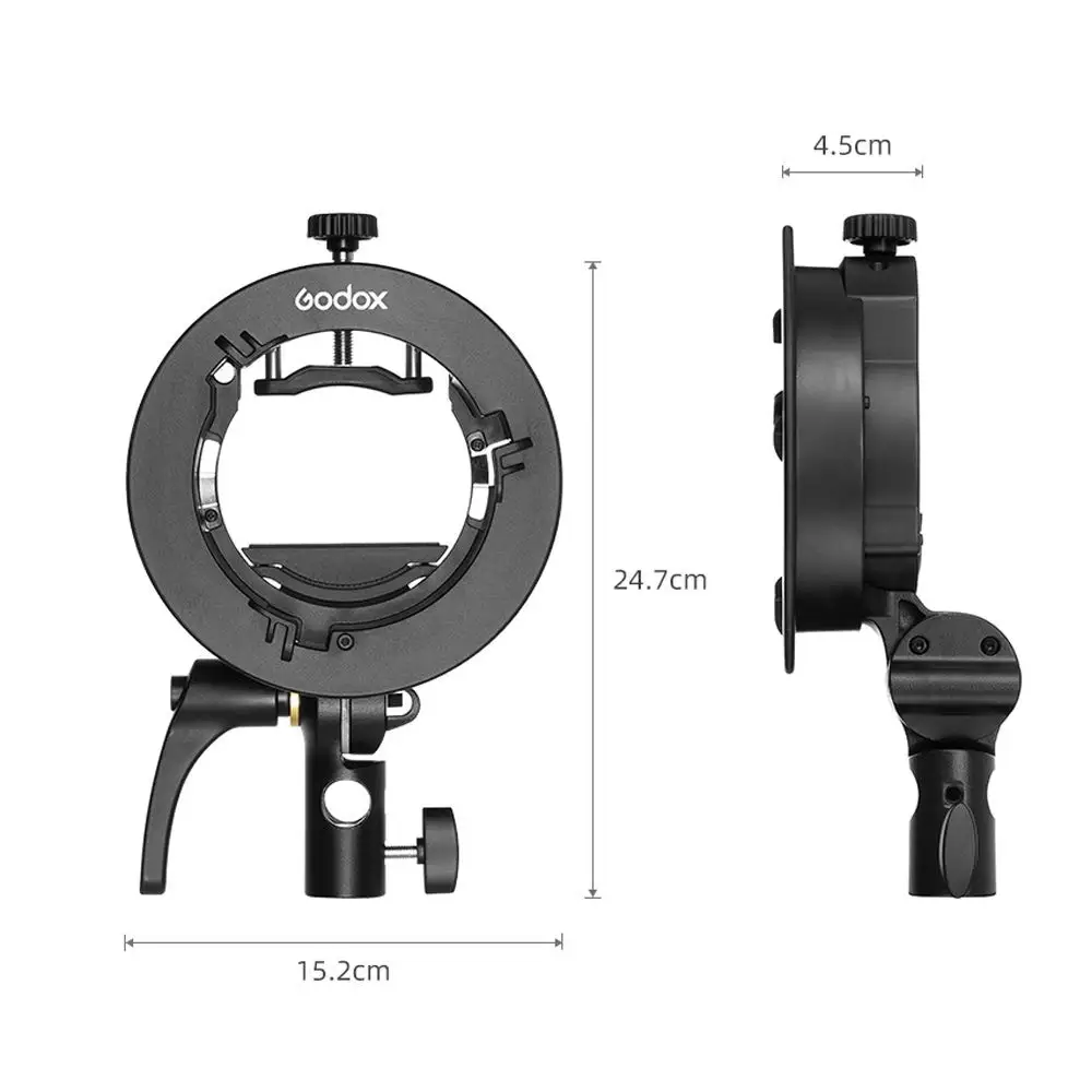 Как оптимизированный запатентованный продукт, кронштейн Godox S-type speedlite превосходит: «Все в одном», меньший размер, портативная конструкция, отсутствие сборки/разборки и простая система крепления. Быстро добавьте аксессуары для освещения Bowens, чтобы получить креативный световой эффект