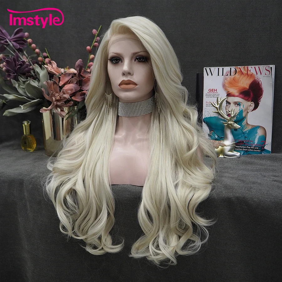 Imstyle пепельный блонд синтетический парик фронта шнурка Термостойкое волокно натуральные волнистые Платиновые длинные парики для женщин косплей парик