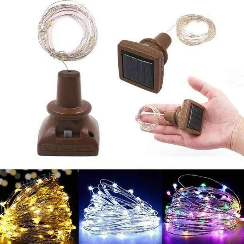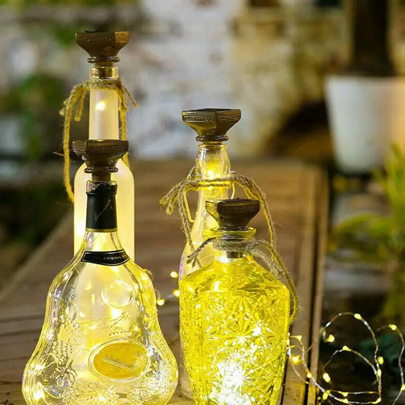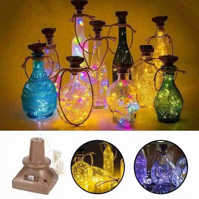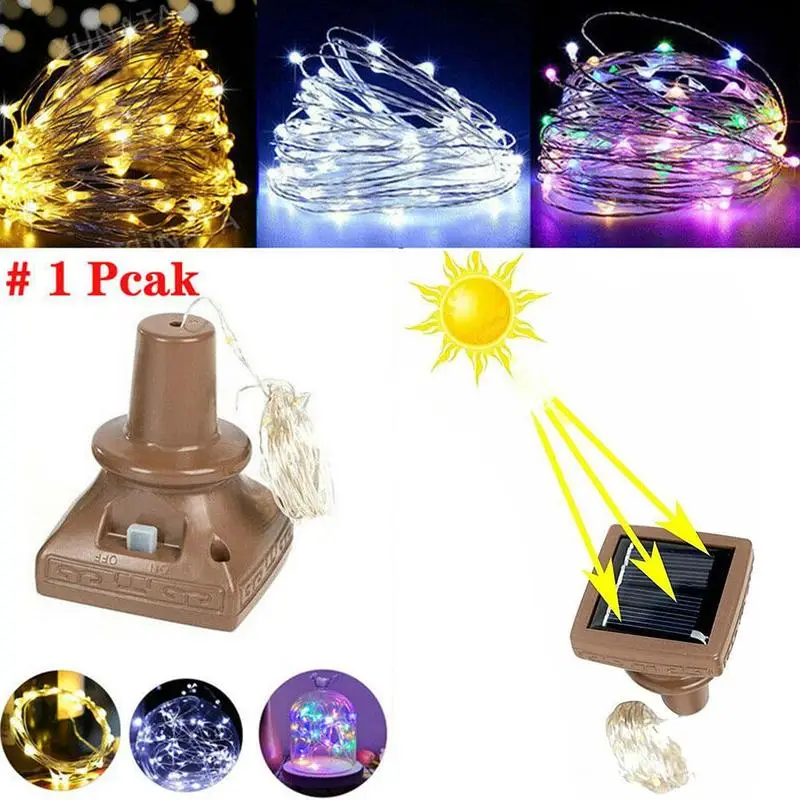 1 в форме винной бутылки на солнечной батарее пробки лампа (за исключением бутылок): подходит для винных бутылок, стеклянные бутылки, бутылки для содовой воды, пивные бутылки и многие другие виды бутылок, пробковая подошва: 1,77 дюймов (45 мм) в диаметре. 20 отдельных микросветодиодов, 2 м (6,6 футов) в длину. Можно использовать в помещении или на открытом воздухе.