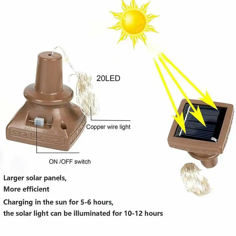 3 гибких медных провода согнуты в любой форме: доступны 3 цвета, теплый белый, белый и многоцветный. Стабильное освещение. Вы можете полностью использовать пустые бутылки, чтобы сделать своими руками красивое украшение для сада, украшение для террасы, украшение для террасы, украшение для забора, рождественское наружное украшение, украшение на Хэллоуин и т. д. И линейная лампа, и солнечная панель являются водонепроницаемыми, Так что это абсолютно безопасно, если вы хотите налить воду в бутылку или выставить лампу бутылки под дождь и снег. (Пробка не является водонепроницаемой).