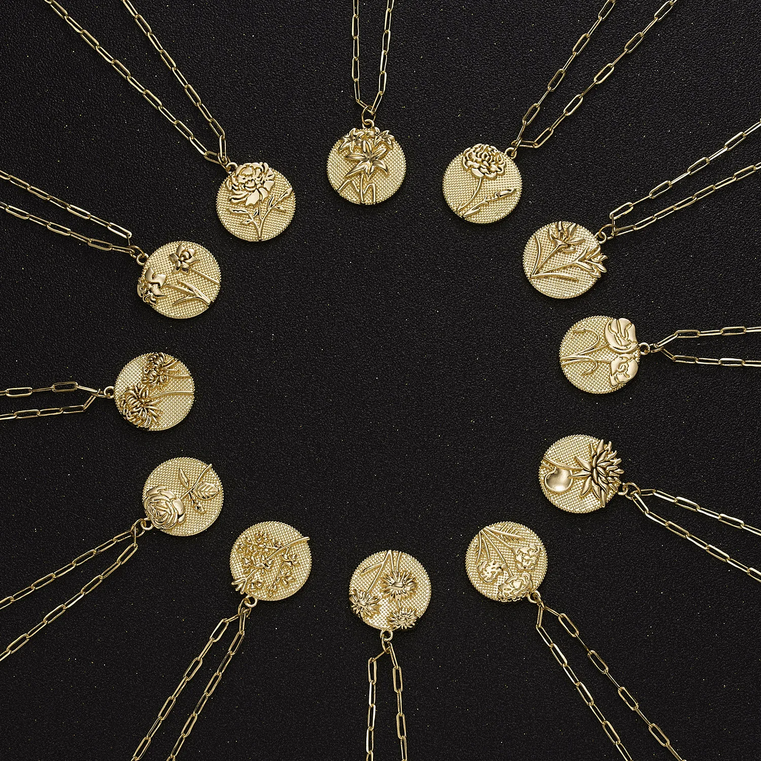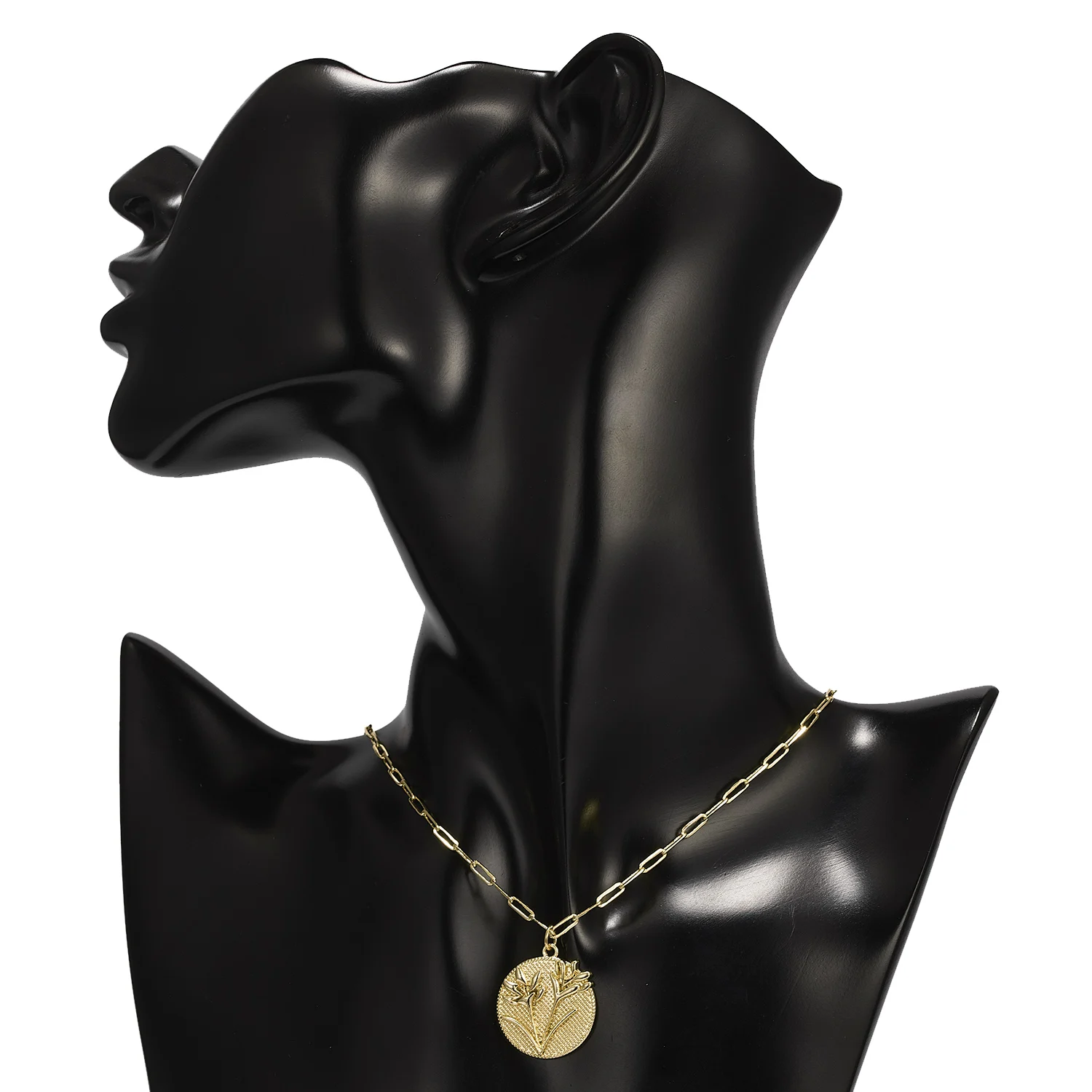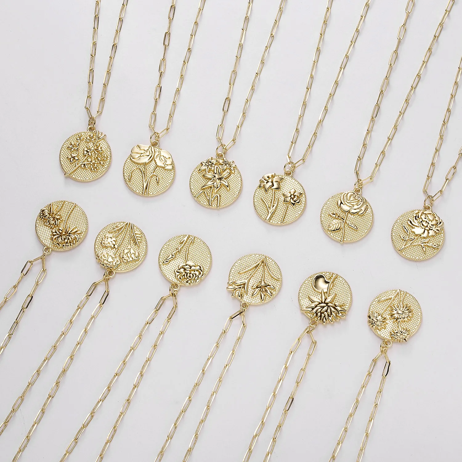 Изящная круглая монета, резной цветок, Маргаритка, роза, лотос, ожерелье, женское винтажное Золотое звено, цепочка, месяц рождения, цветок, ювелирное изделие
