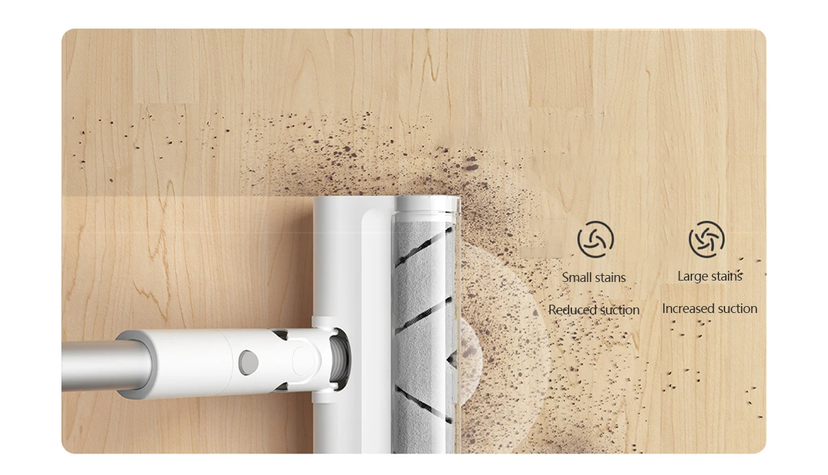 Встроенная щетка с электронным управлением для эффективной очистки, более эффективная Два в одном Высокоэффективная очистка. Отверстие для всасывания пыли спереди и двойная вращающаяся Швабра сзади удовлетворяют потребности в различных уборках, экономя время и силы.