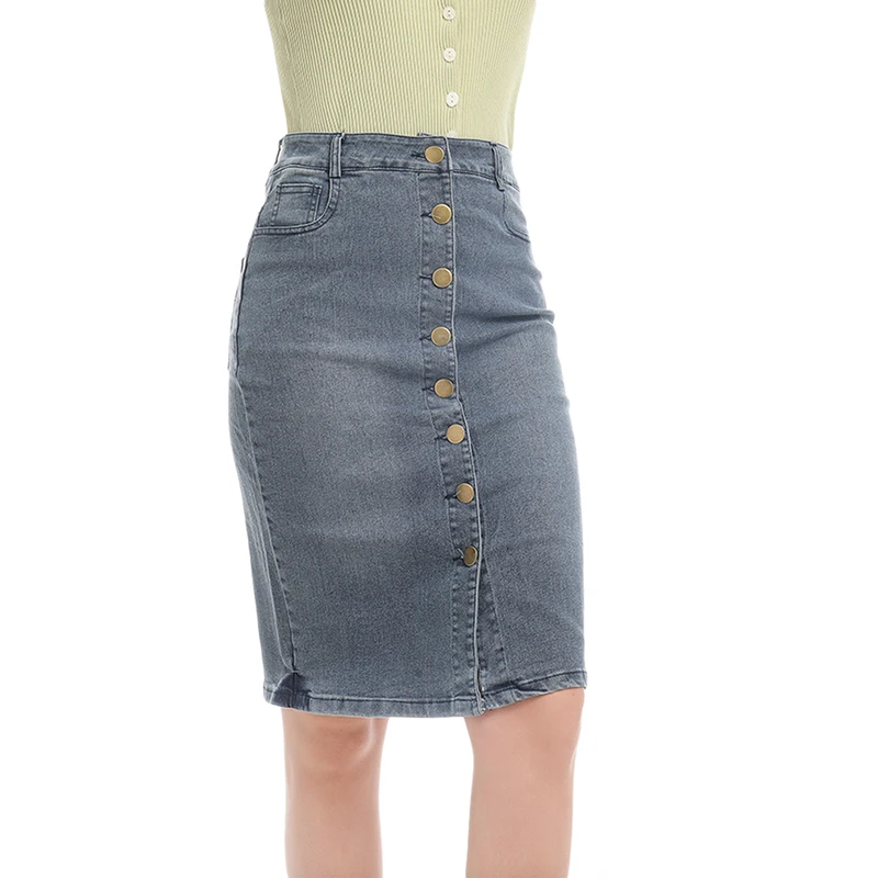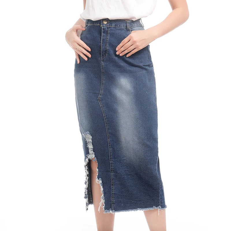 Женские джинсовые юбки с высокой талией и пуговицами размера плюс, джинсовые юбки с короткими карманами, уличные стильные юбки-карандаш средней длины, женские юбки до колен
