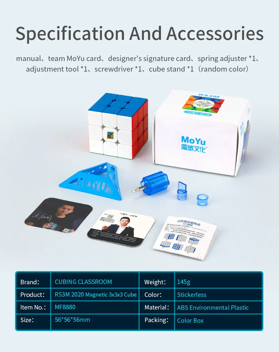 Название продукта: Moyu RS3M 2020 Магнитный 3x3 куб Цвет: без наклеек Размер: 56*56*56 мм Вес: 145 г Материал: АБС Посылка: оригинальная коробка