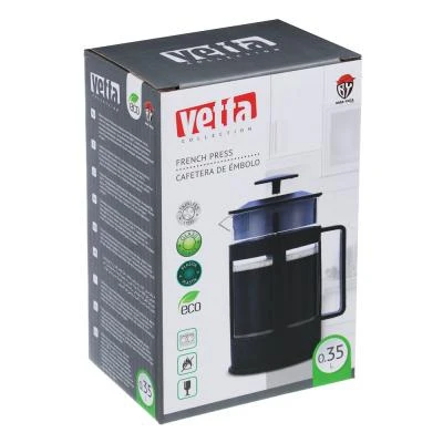 Френч-пресс Vetta Мелана объемом 350 мл заваривает идеальный чай и кофе. Поршень из нержавеющей стали не вступает в реакцию с заваркой, не портит ее природный аромат и вкусовые качества. Стеклянная колба хорошо держит тепло, позволяя чайным листьям полностью раскрыться. Эргономичная пластиковая ручка не нагревается. Крышка также остается слегла теплой, позволяя проводить чаепитие без риска получить ожоги.