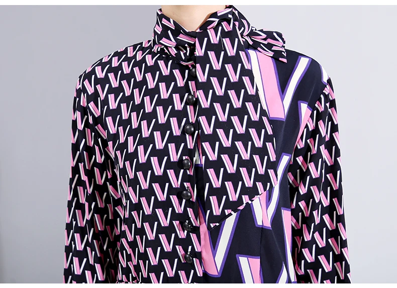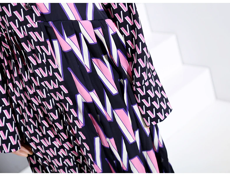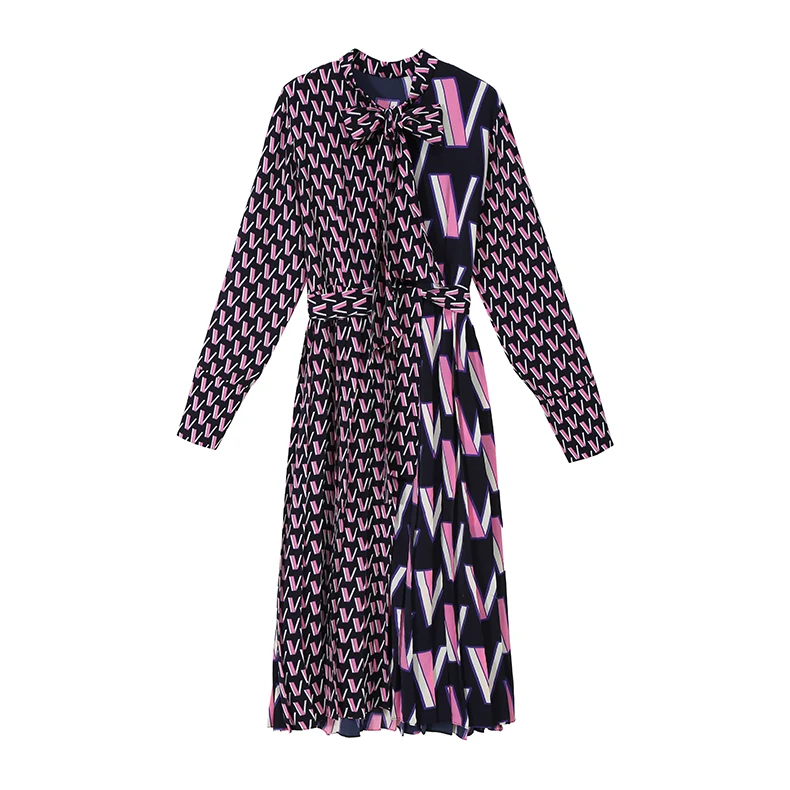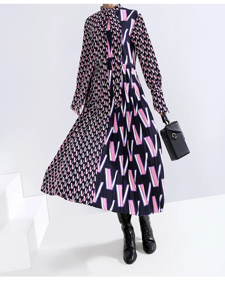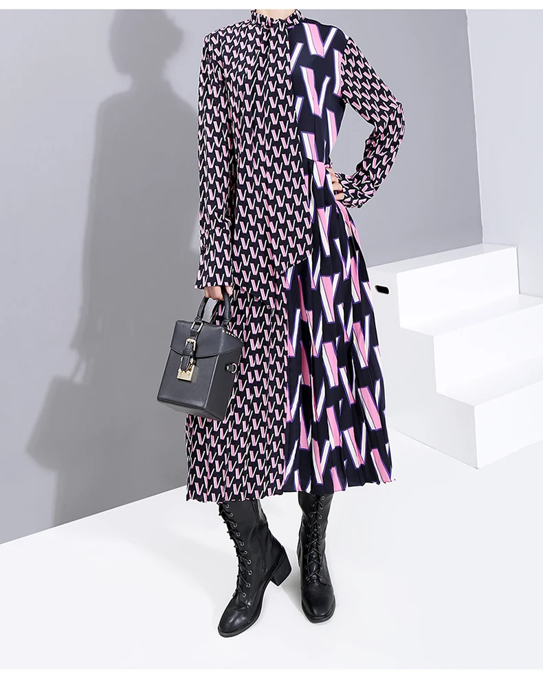 Новинка 2021, женское платье с длинным рукавом в Корейском стиле, розовое, с геометрическими узорами, с принтом, женское стильное платье для вечеринки, Клубное платье, женский стиль 5789